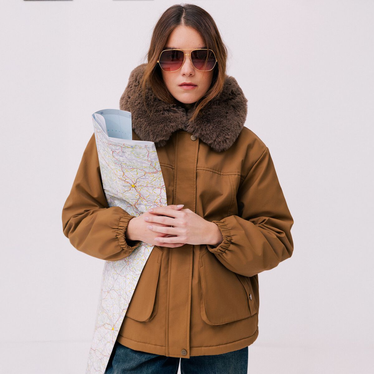 80% OFFDANS LE PANIERParka col fausse fourrure amovible marron foncé femme