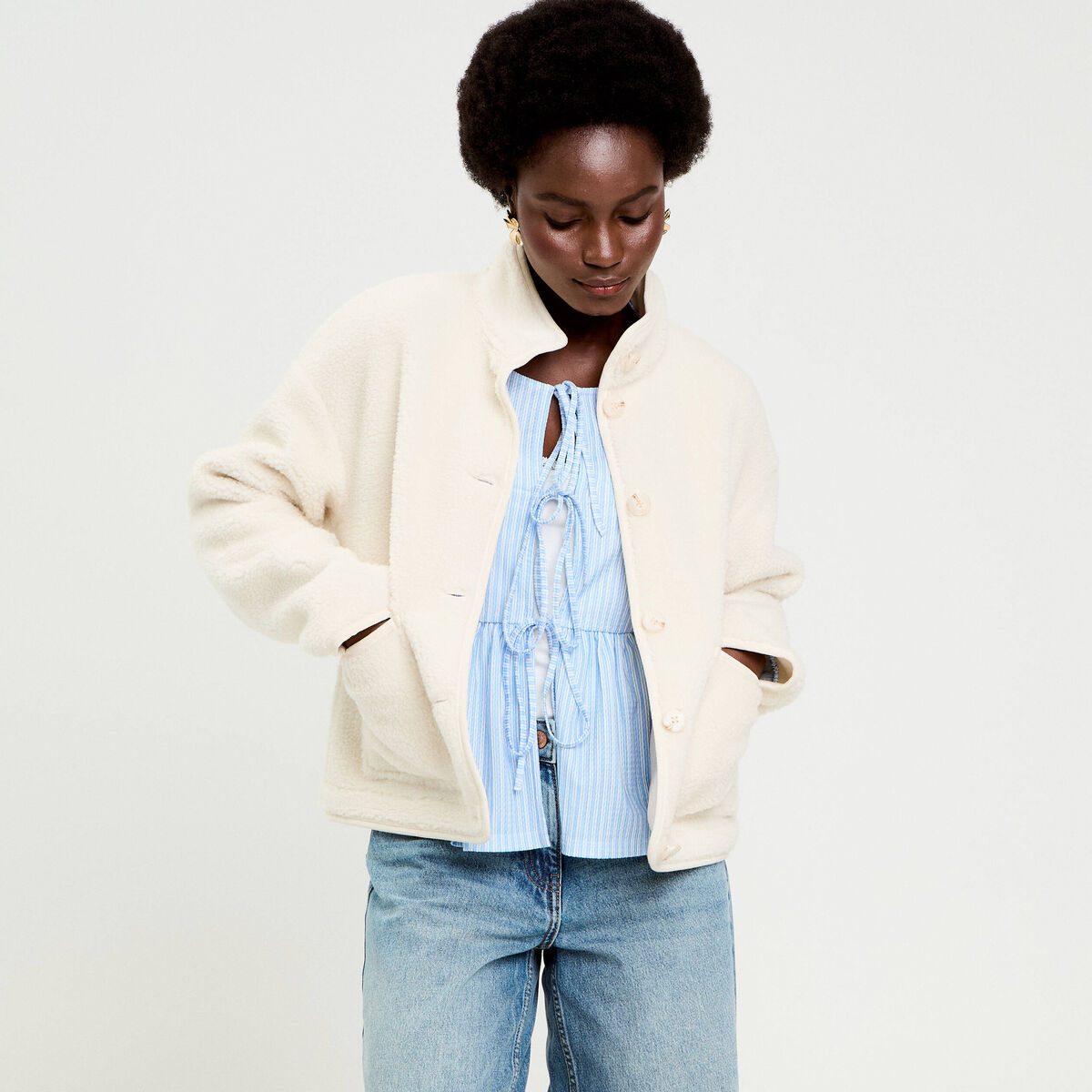 80% OFFDANS LE PANIERVeste droite courte effet polaire ecru femme