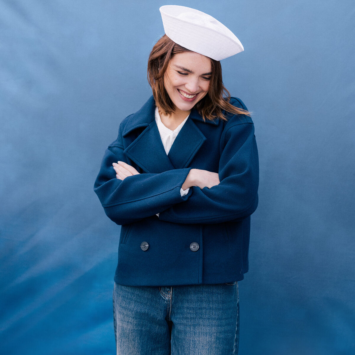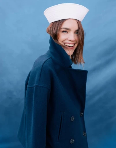 80% OFFDANS LE PANIERCaban court oversize col tailleur bleu marine femme