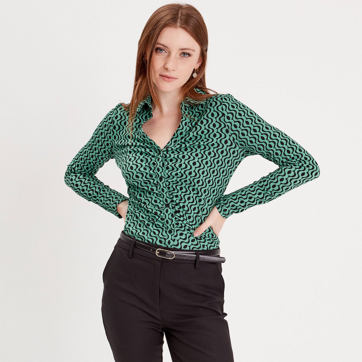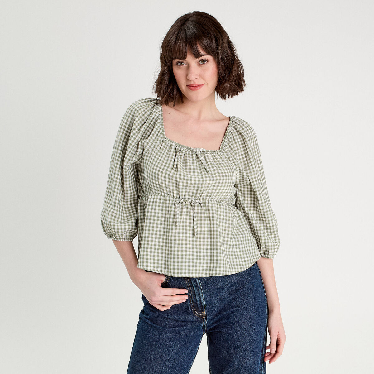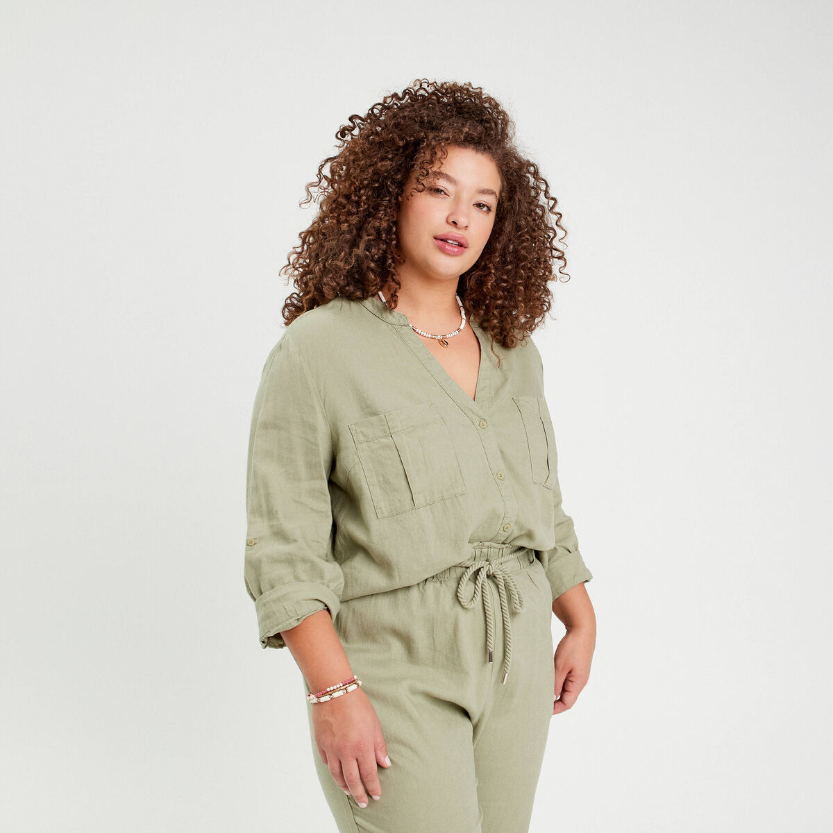 Chemise manches 3/4 contenant du lin vert kaki femme