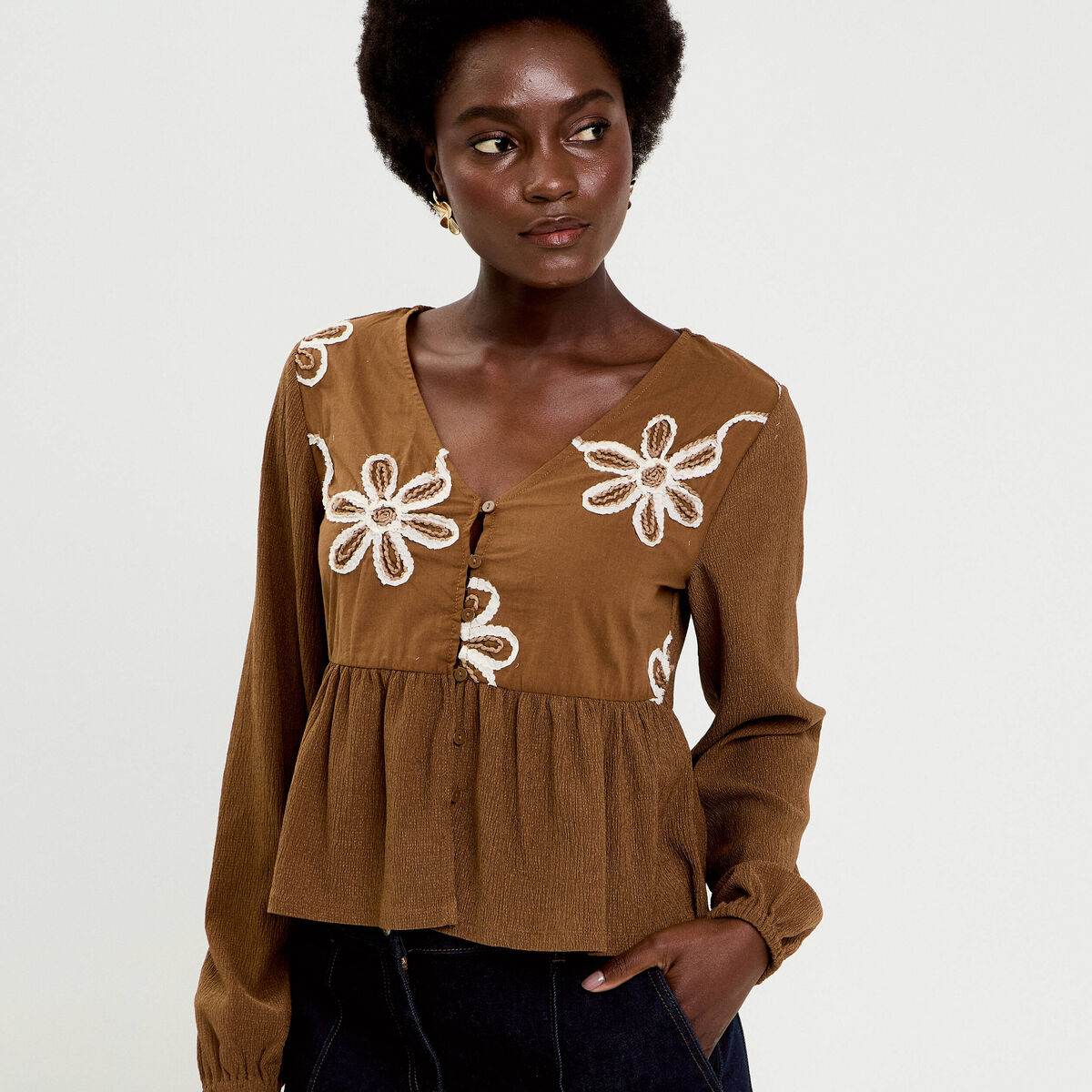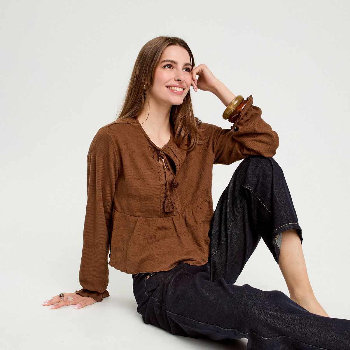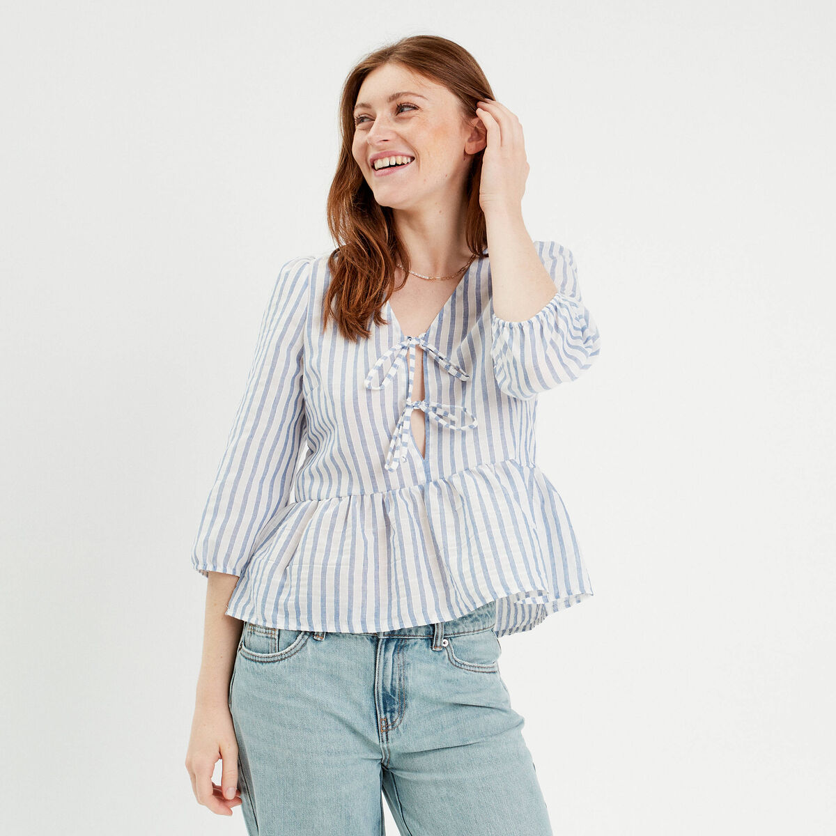 Chemise manches 3/4 contenant du lin vert kaki femme