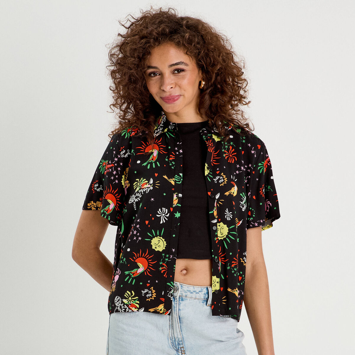 Chemise manches courtes noir femme