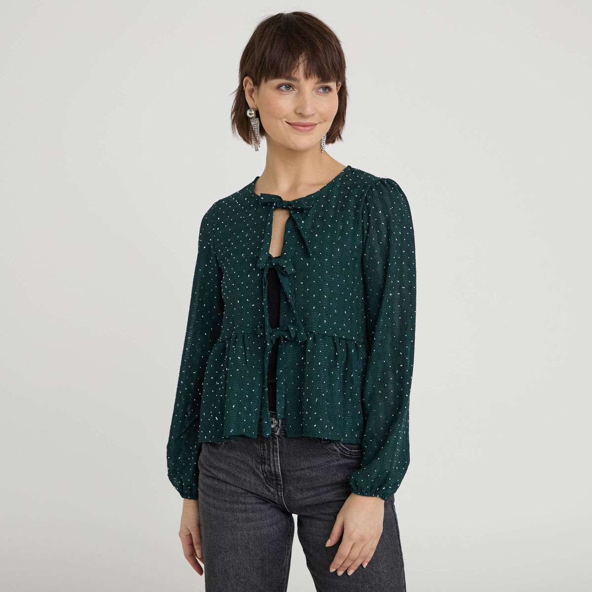 Blouse nouée strass vert foncé femme