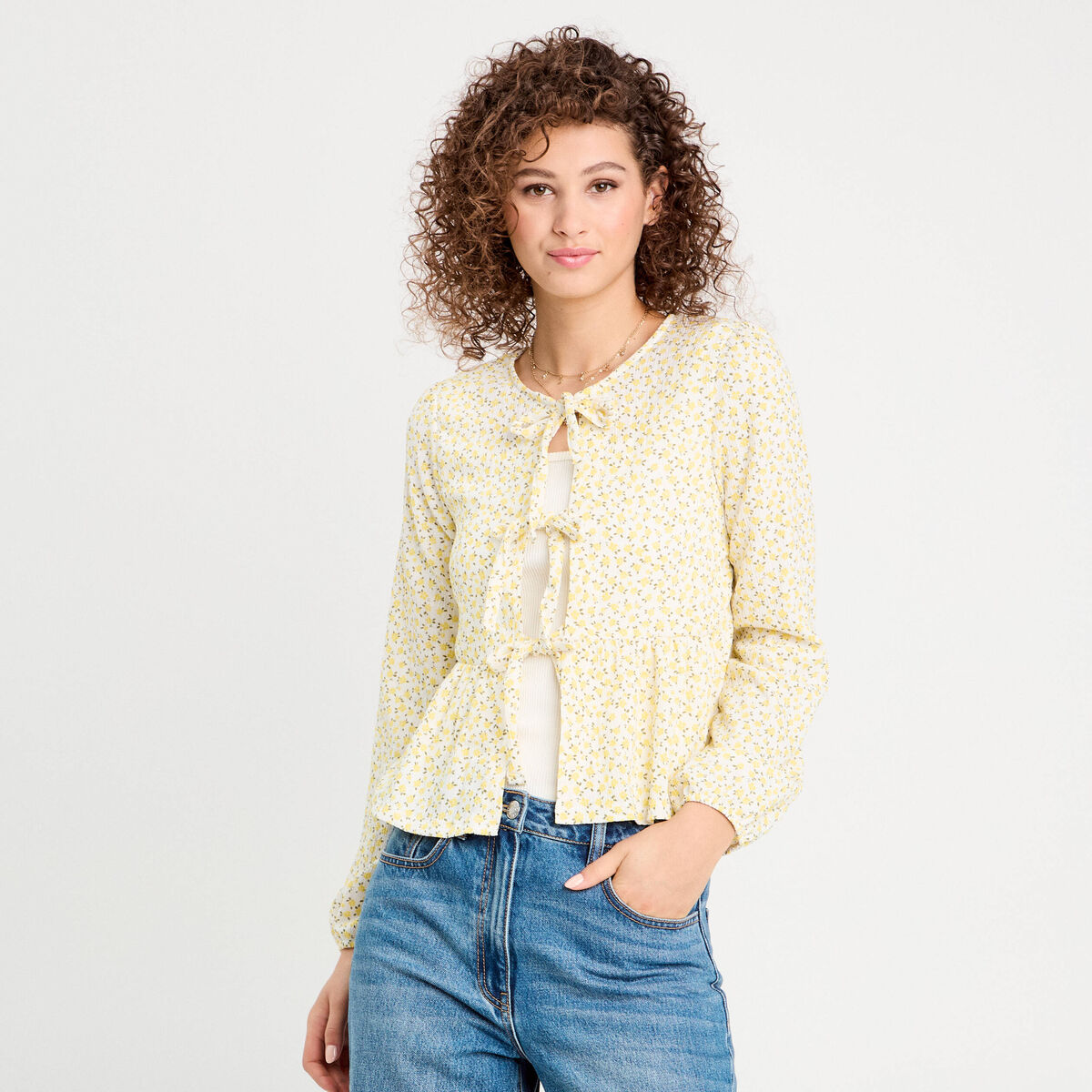 Blouse nouée manches longues blanc femme