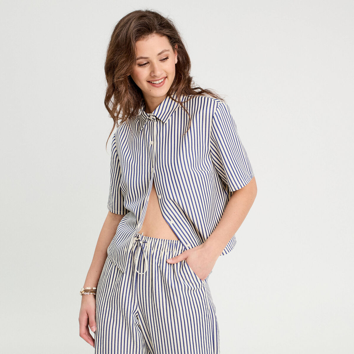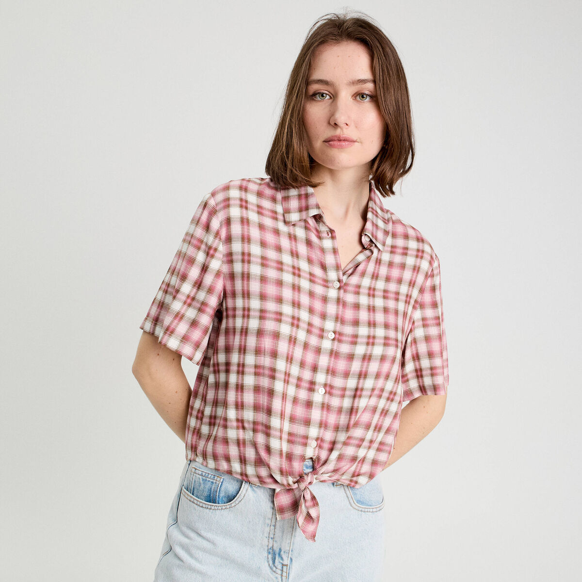 Chemise manches courtes nouée rose femme