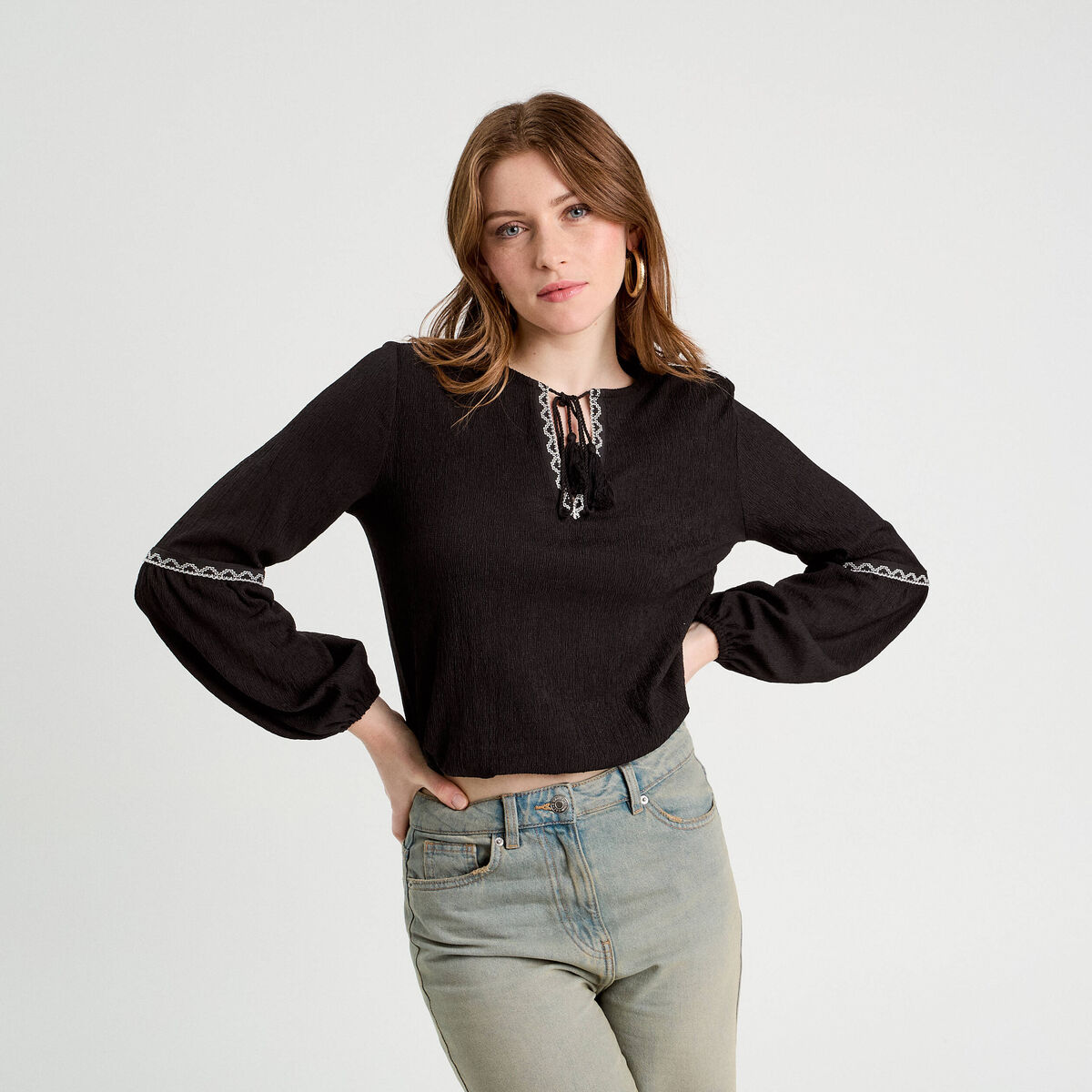 Blouse manches longues noir femme