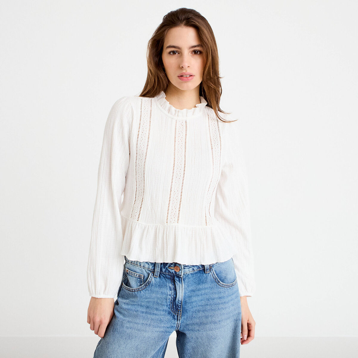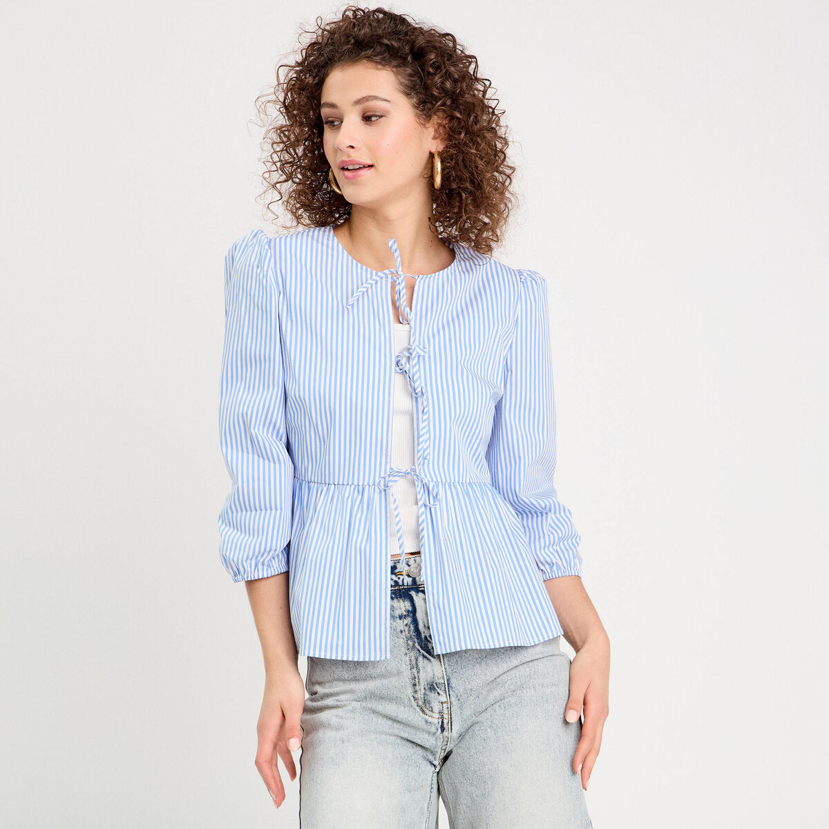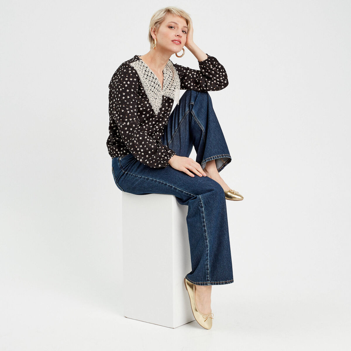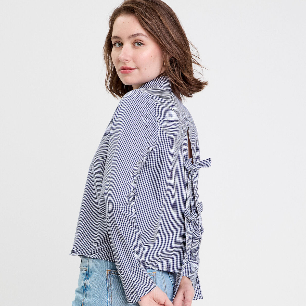 Pull 2-en-1 col chemise manches longues bleu marine femme