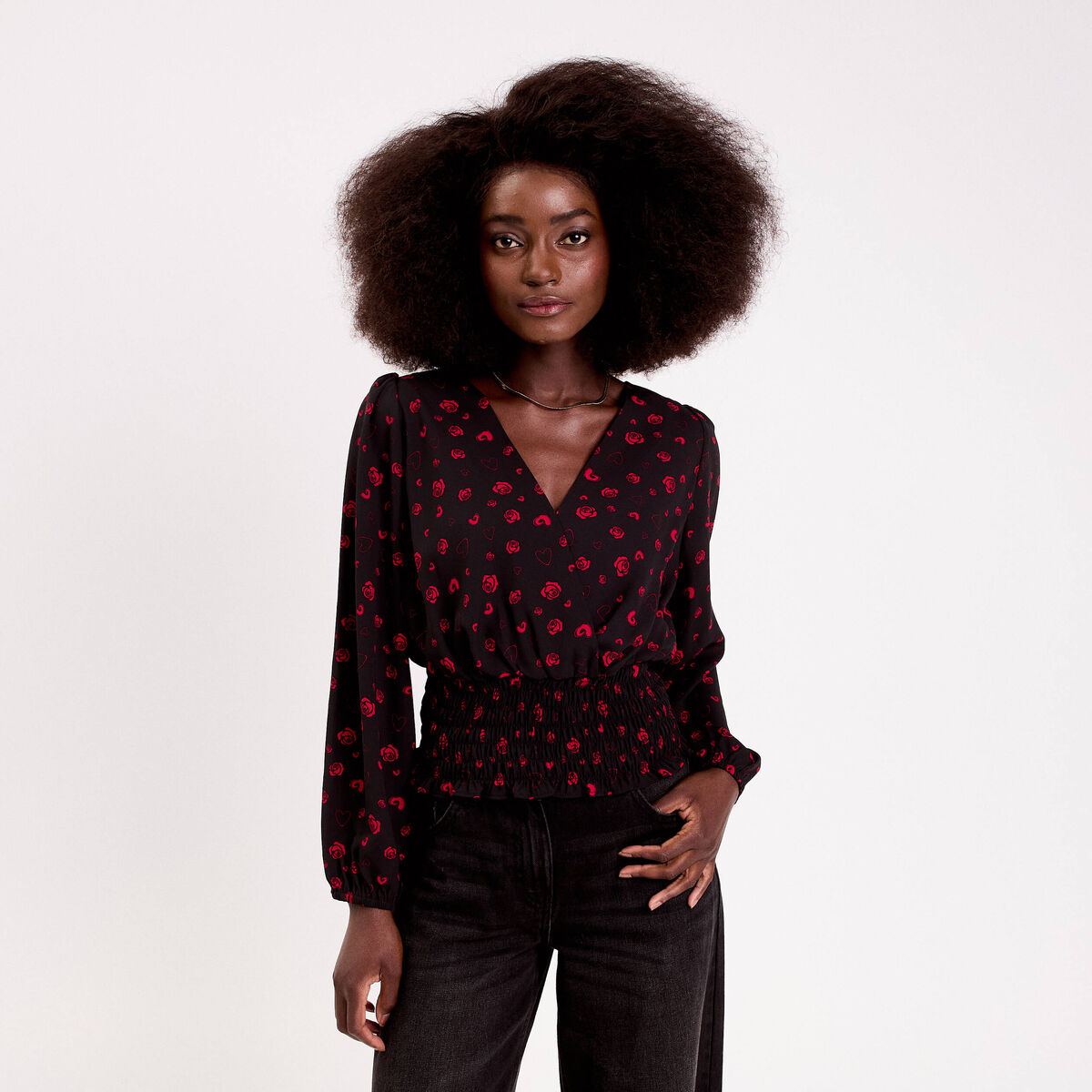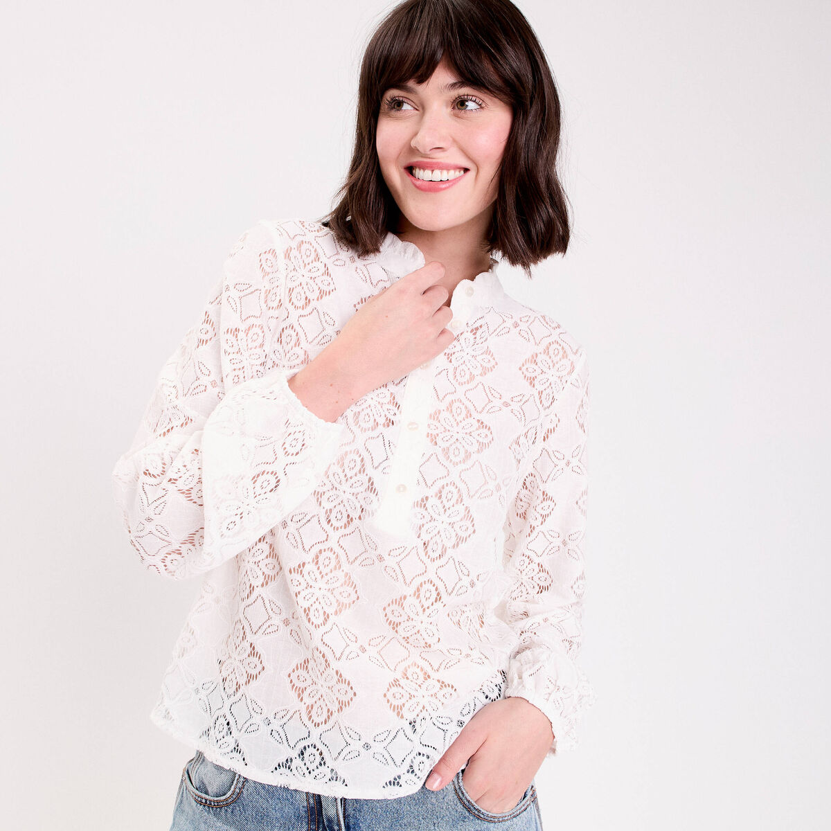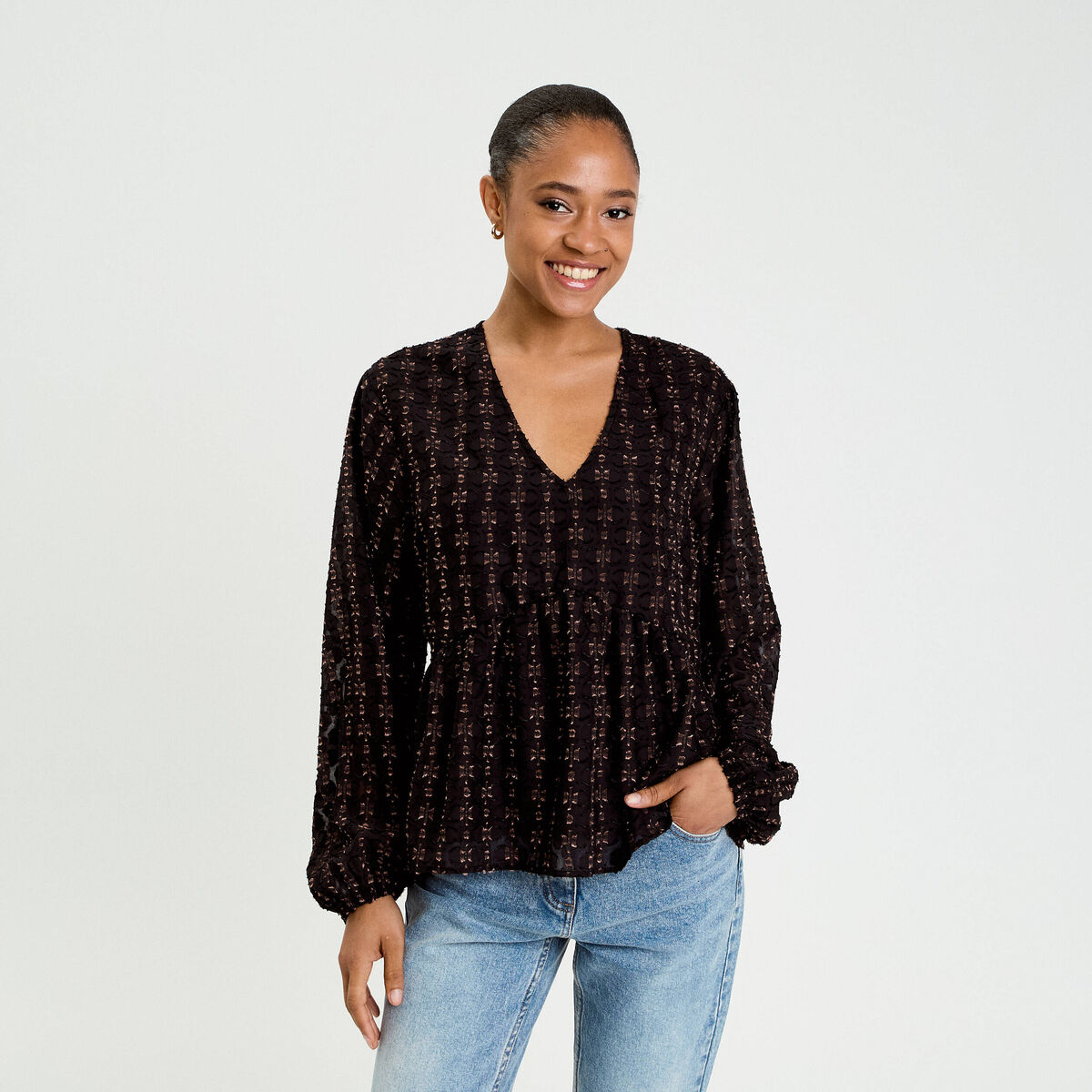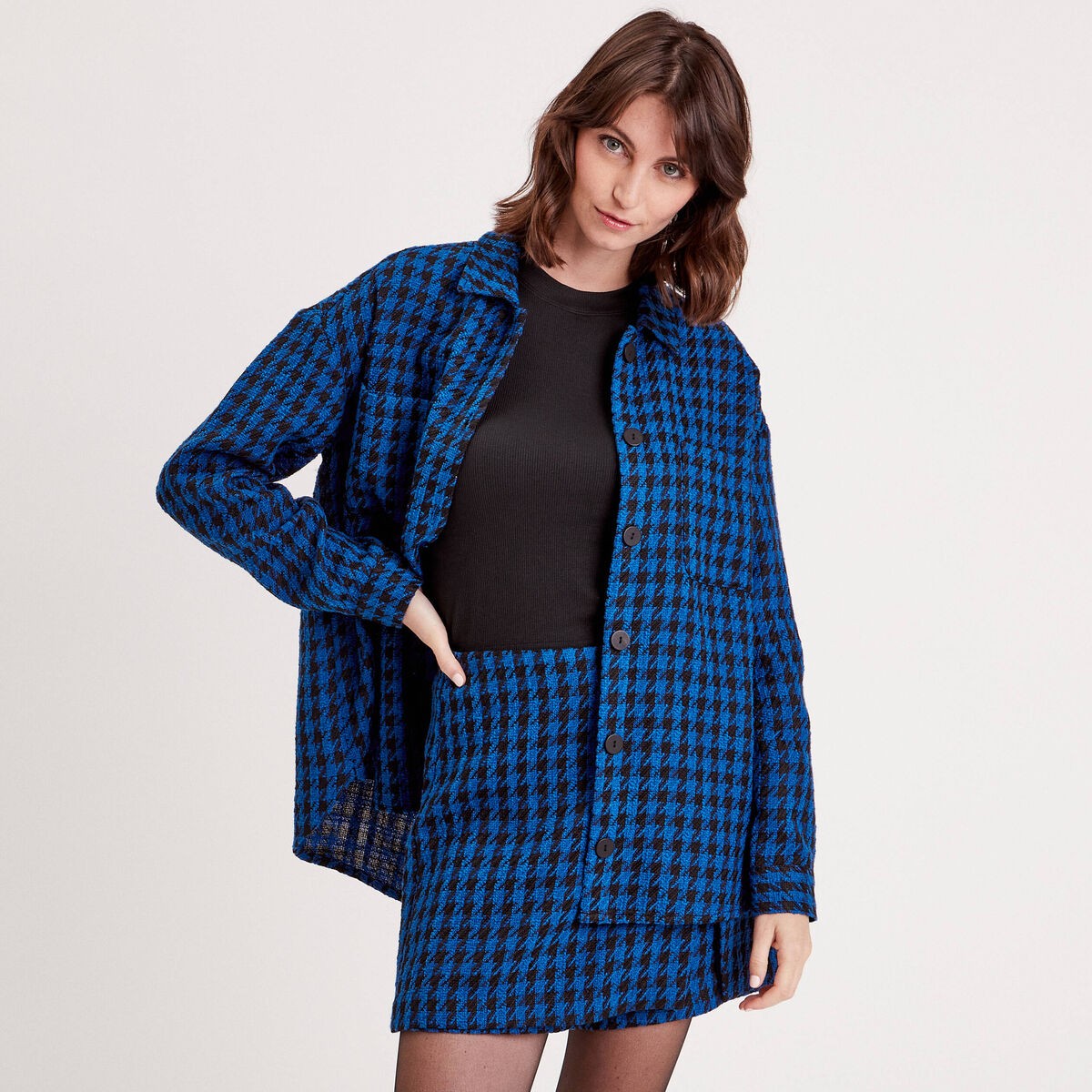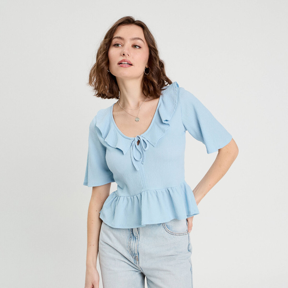 Pull 2-en-1 col chemise manches longues bleu marine femme