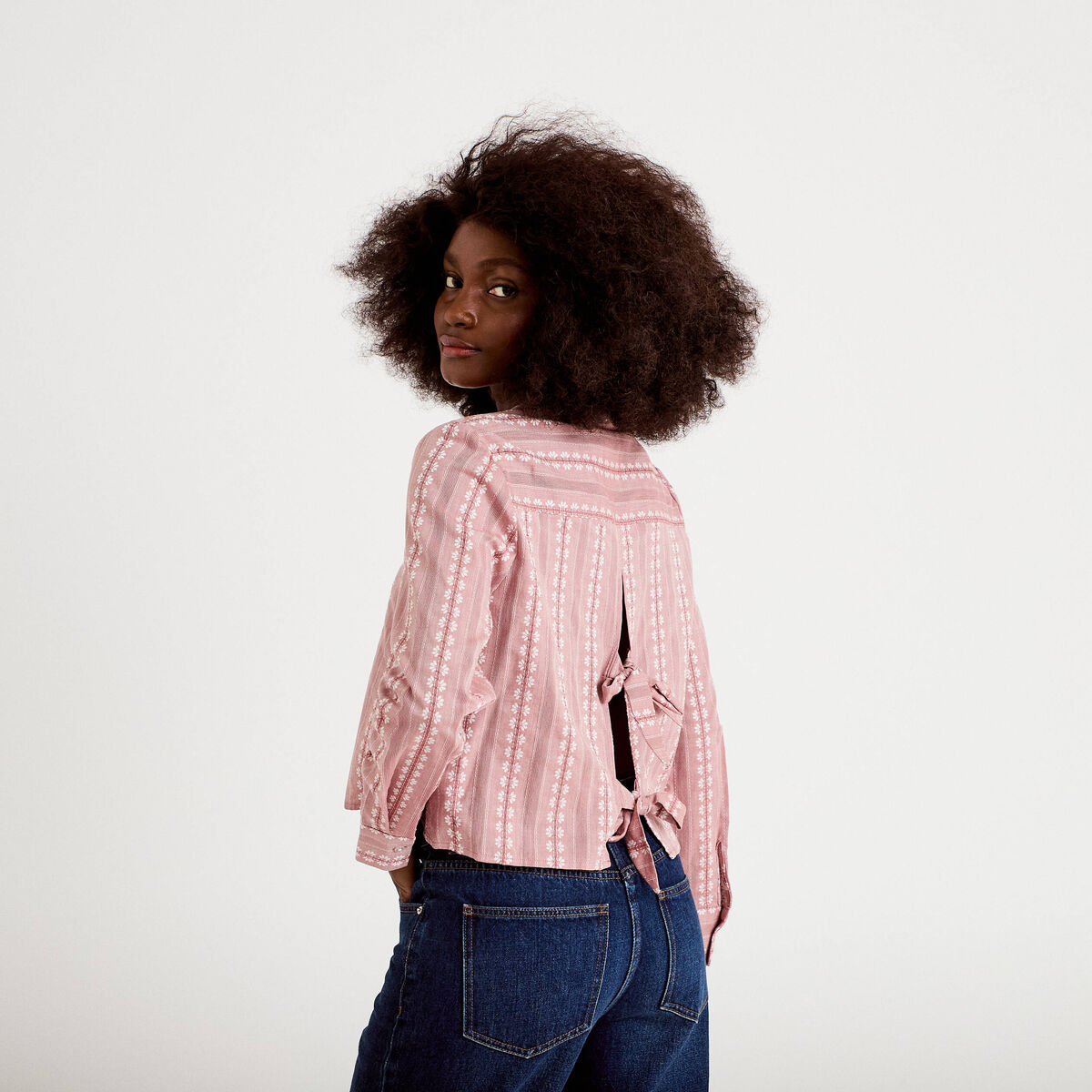 Blouse bi-matière oversize col v rose clair femme