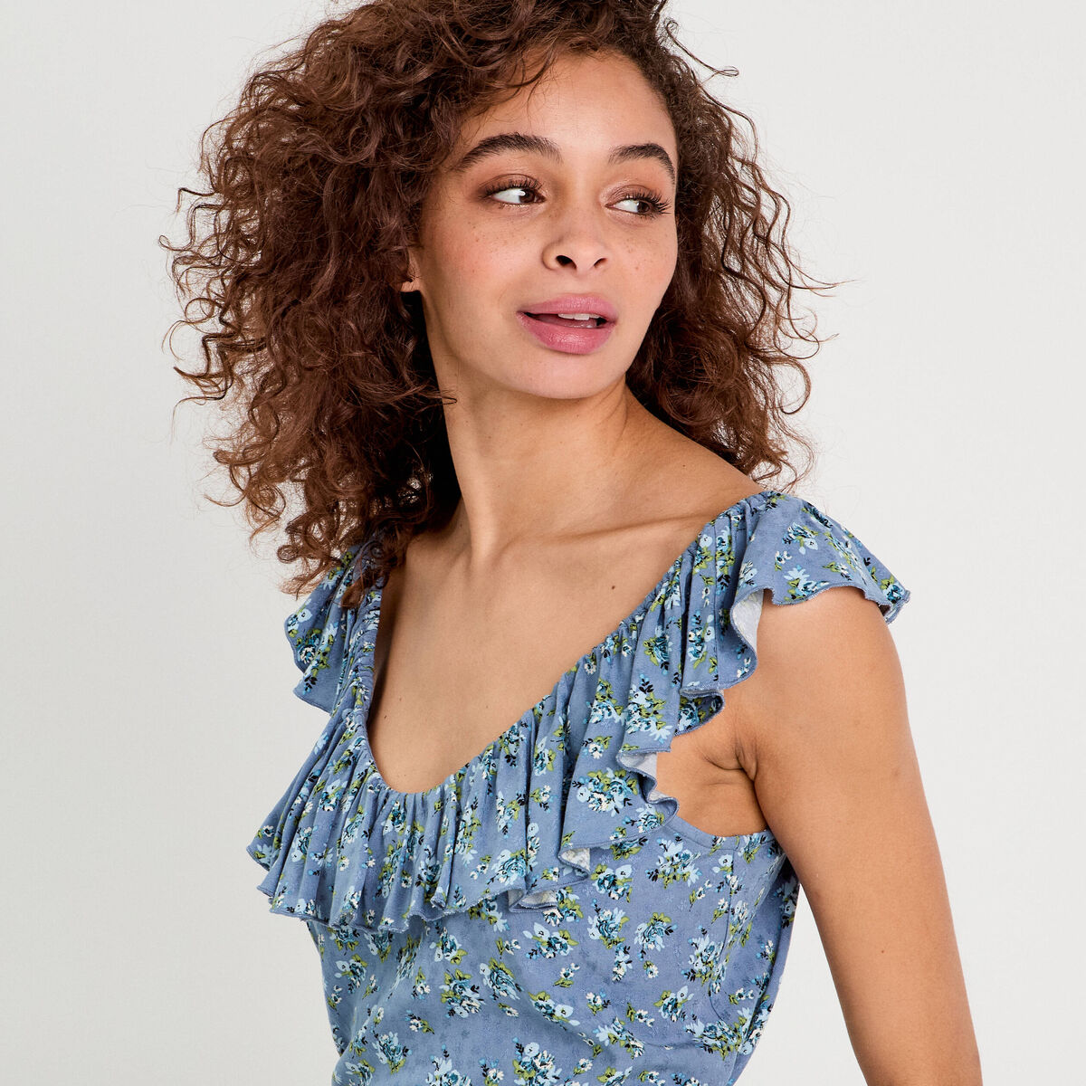 Blouse col volants bleu foncé femme