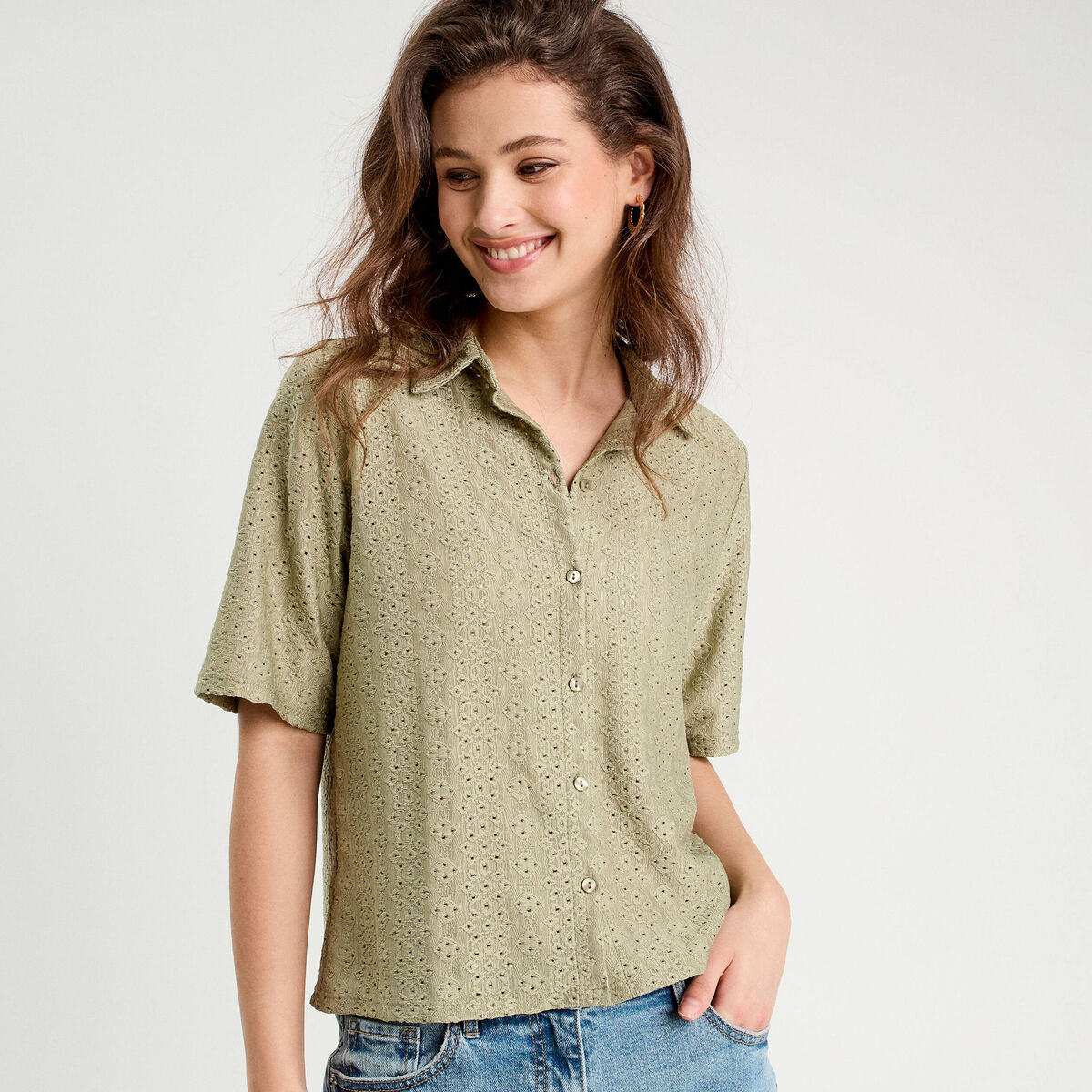 Chemise ajourée vert kaki femme