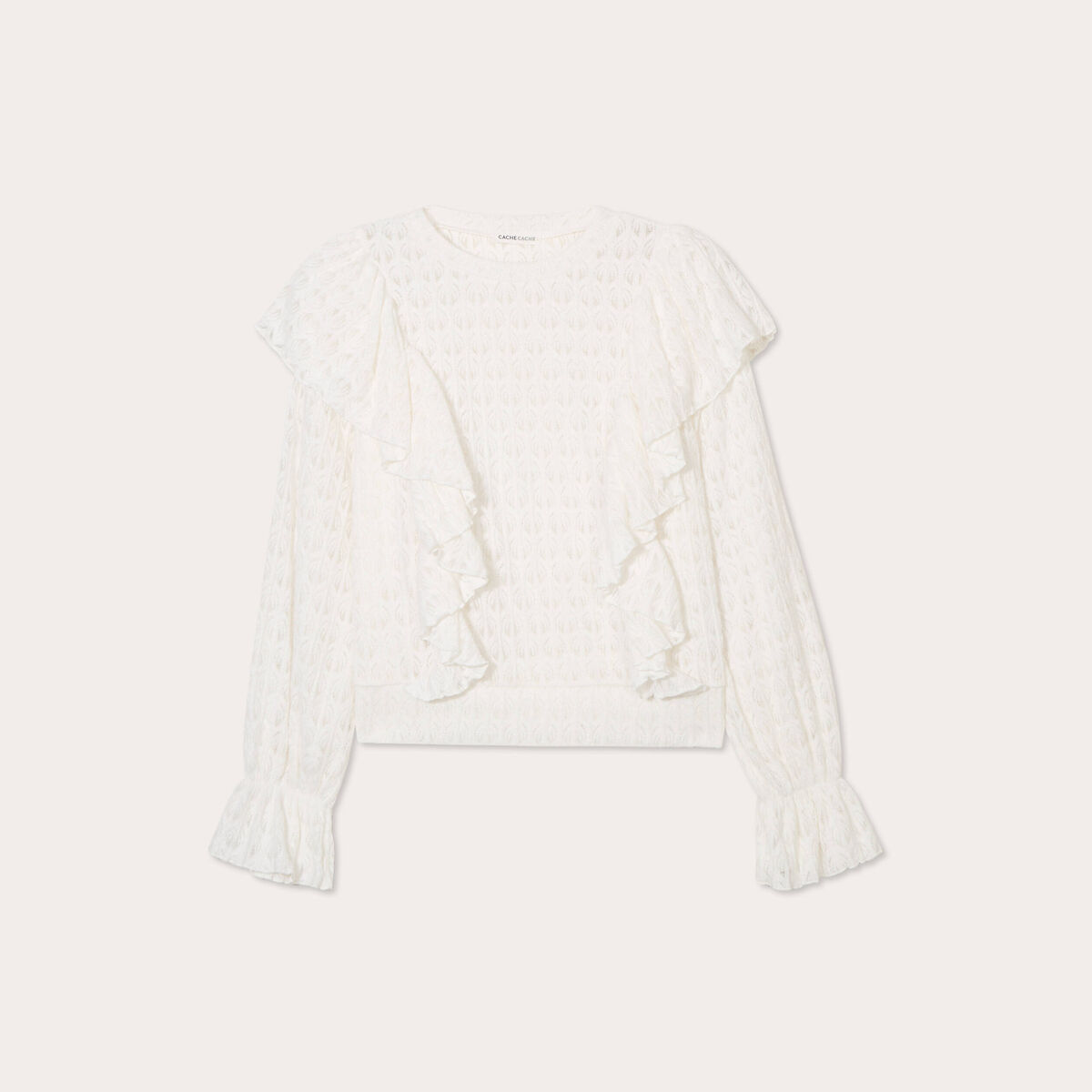 Blouse ajourées volants ecru femme