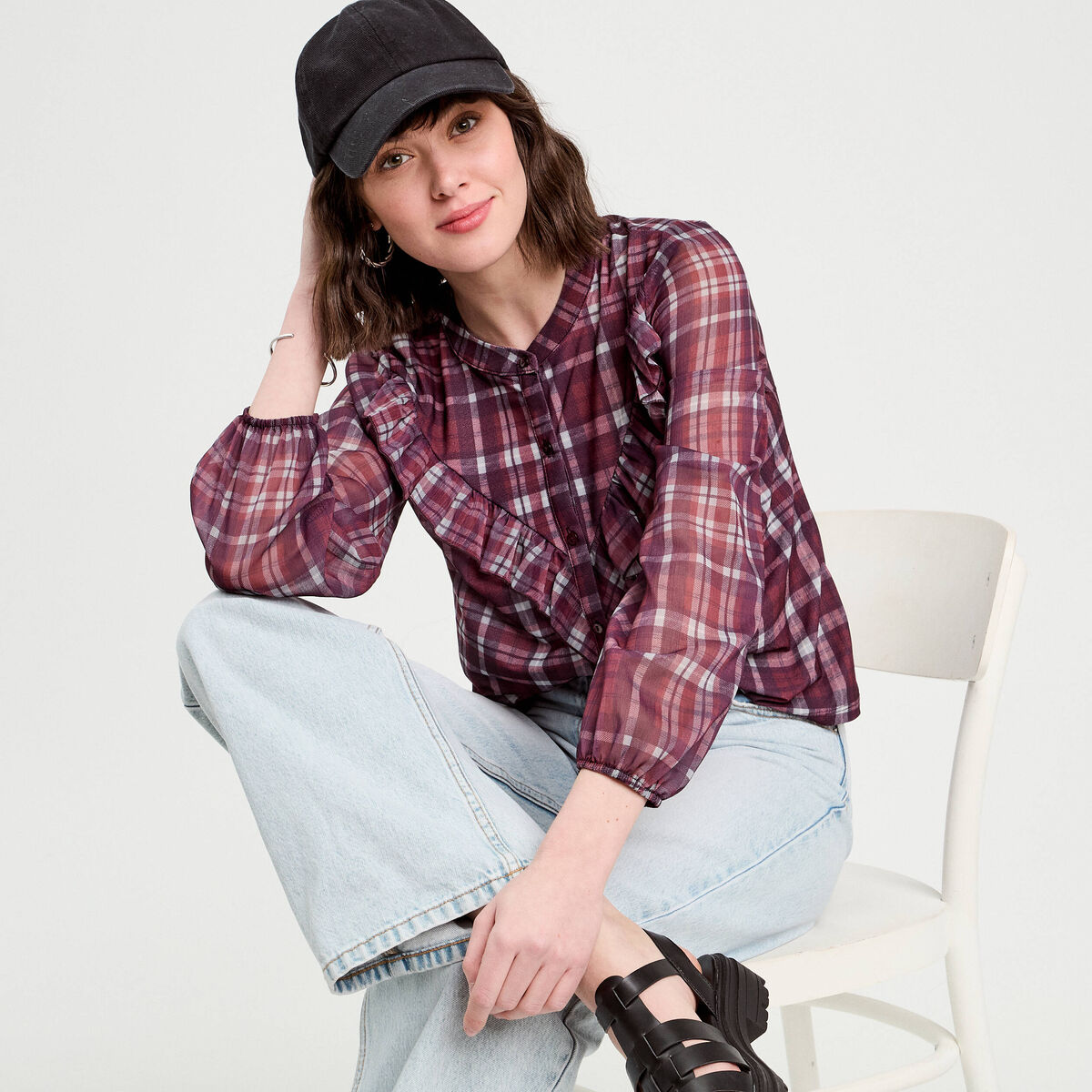 Chemise manches longues prune femme