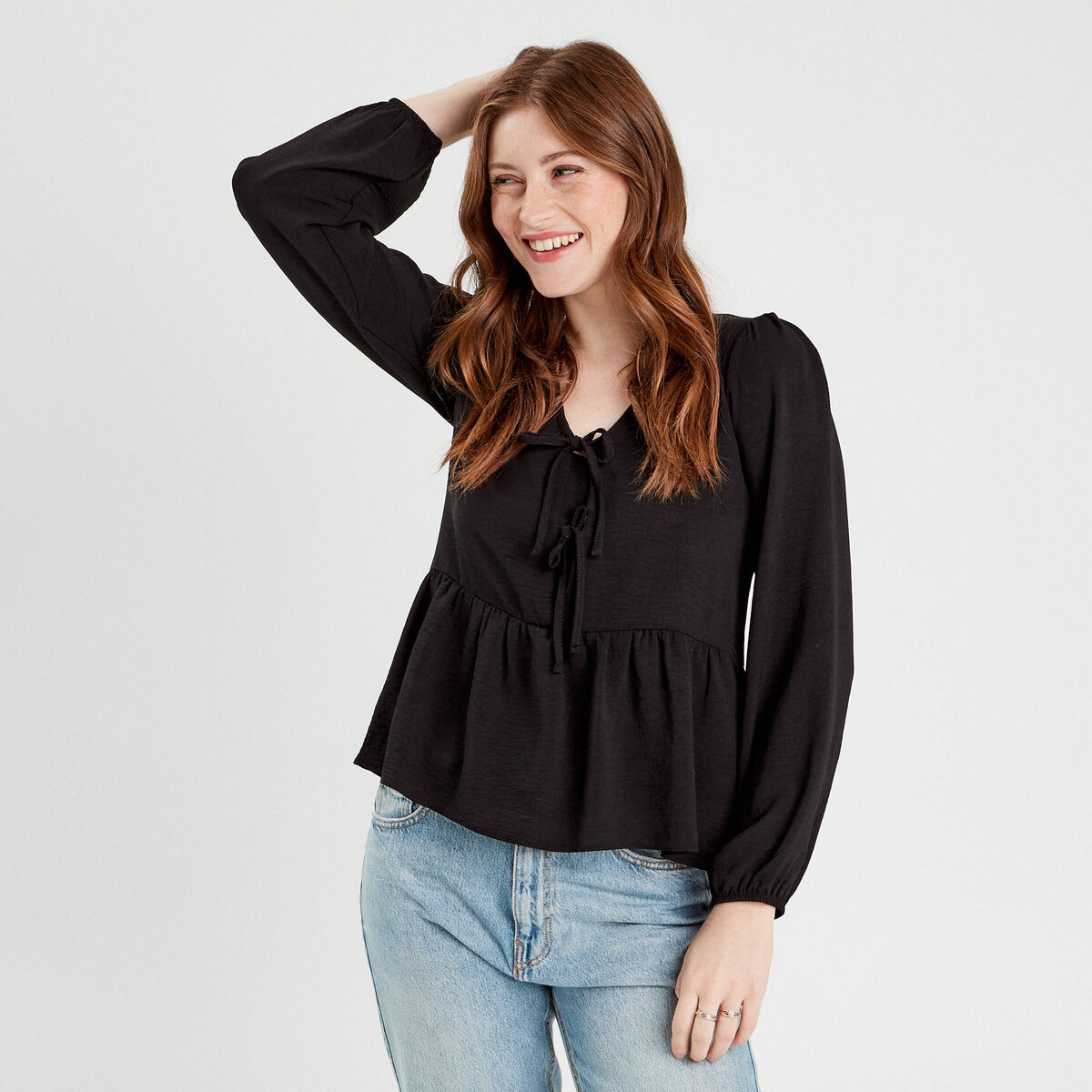 Blouse nouée noir femme