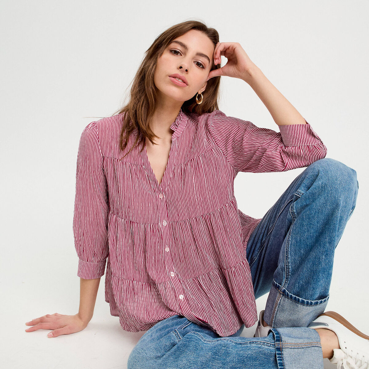 Blouse manches 3/4 bordeaux femme