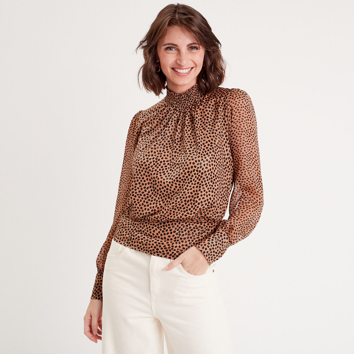 Blouse manches longues beige femme
