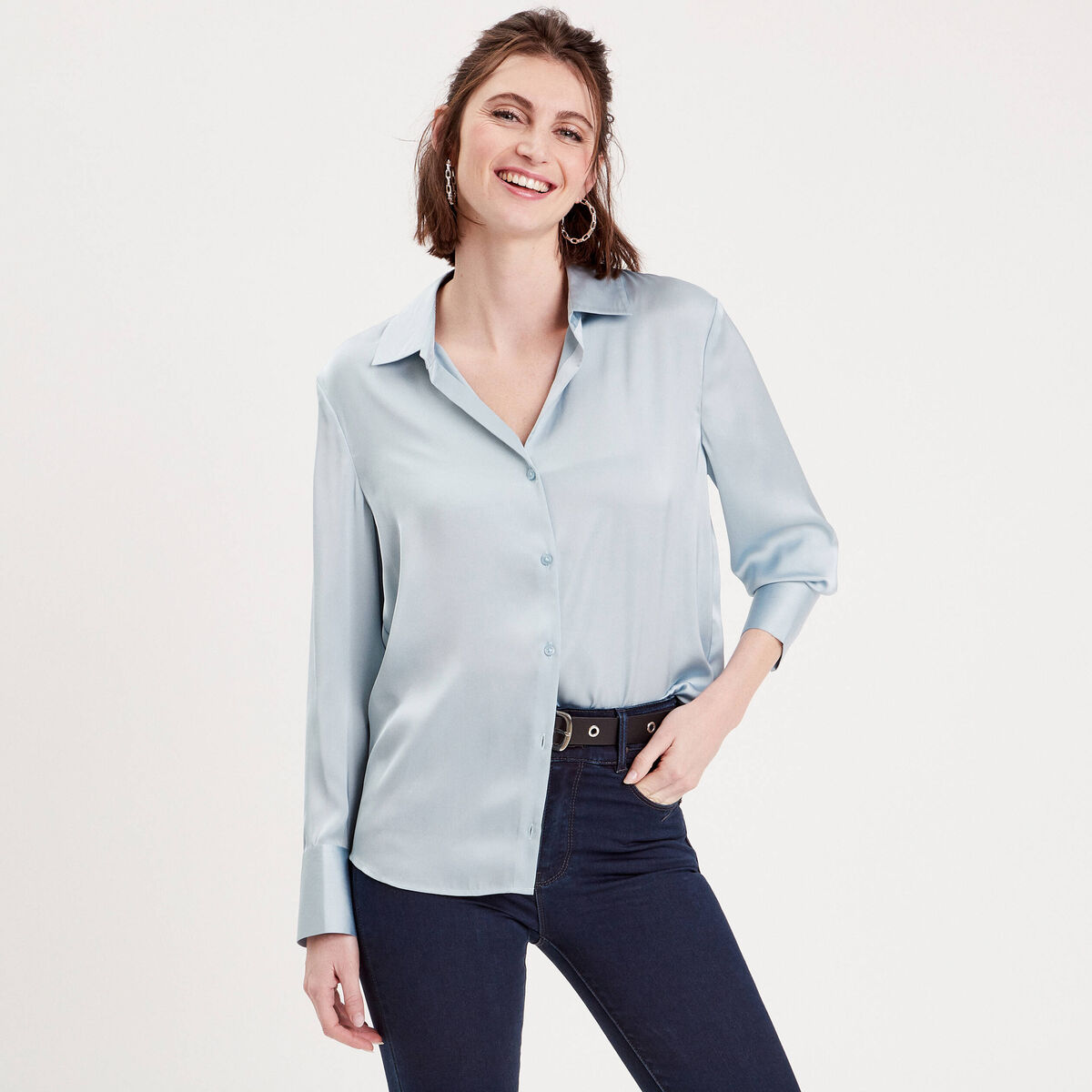 Chemise satinée bleu clair femme