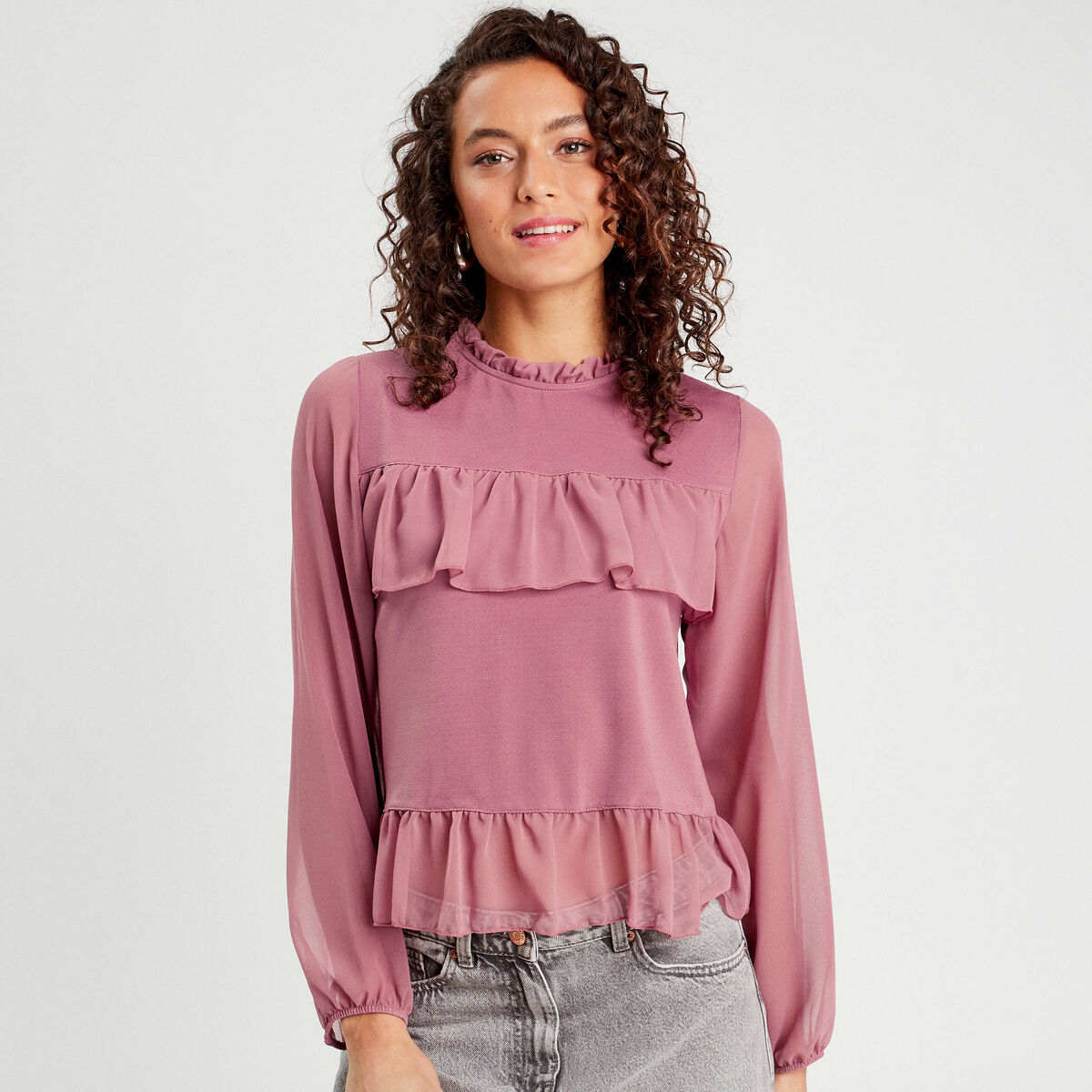 Blouse volants vieux rose femme