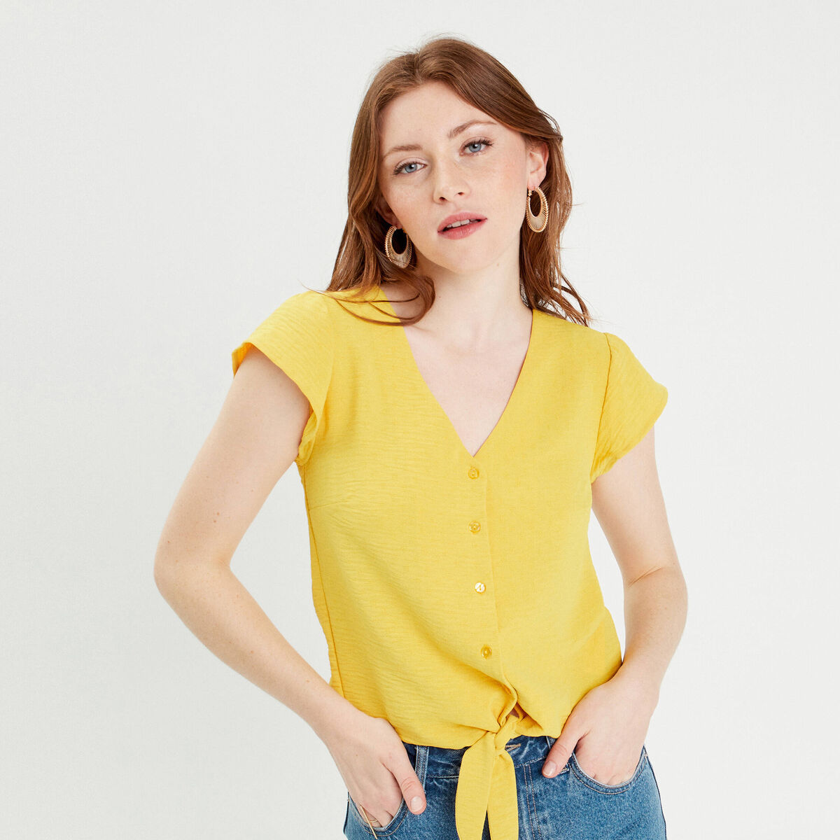 Blouse manches courtes jaune clair femme