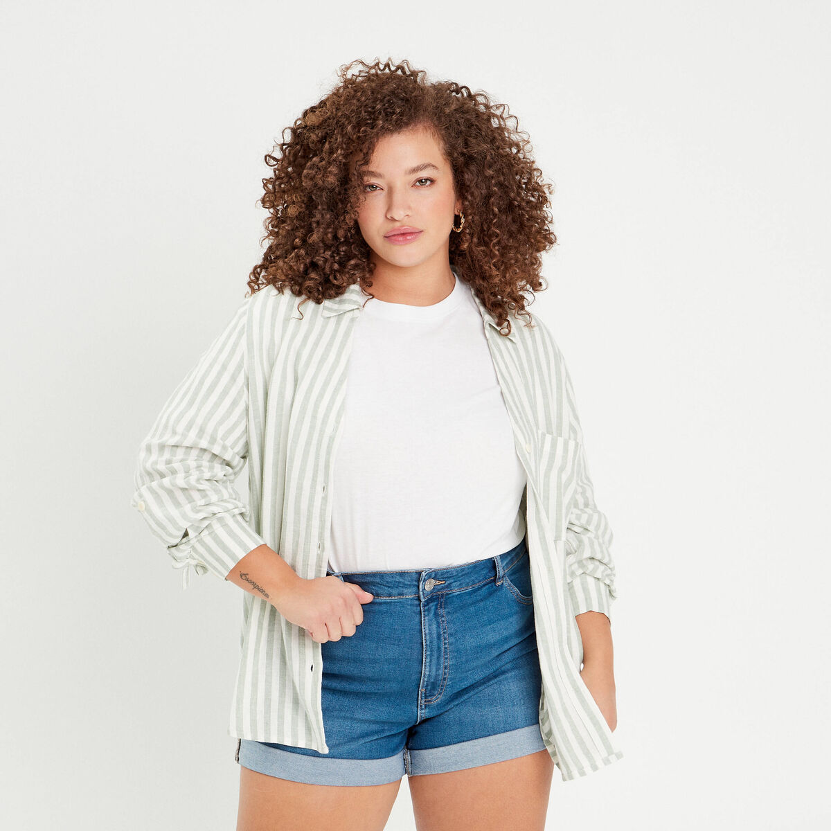 Chemise manches longues contenant du lin vert femme