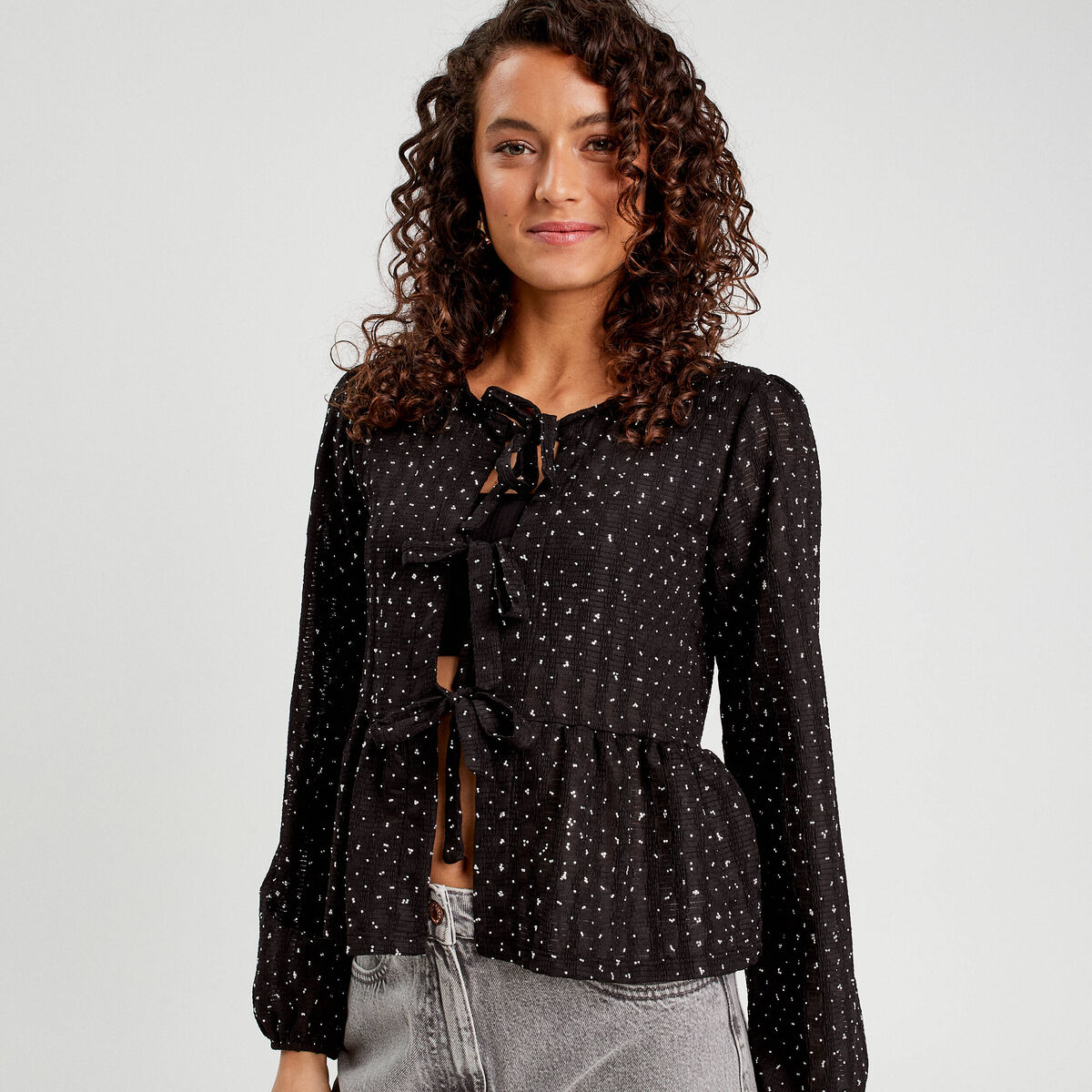Blouse nouée strass noir femme