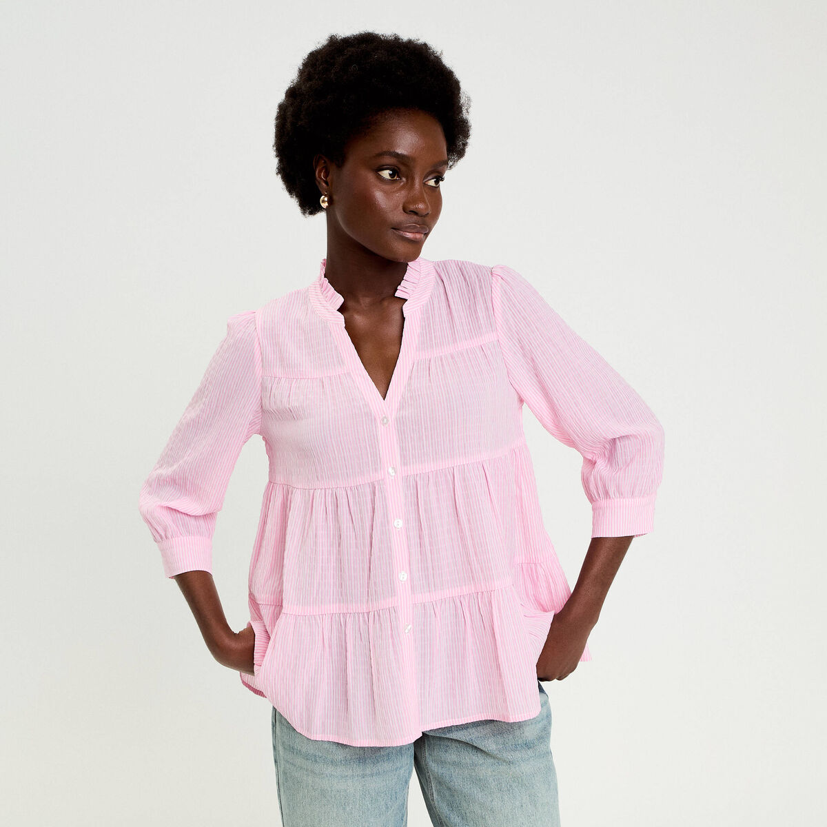 Blouse manches 3/4 rose clair femme