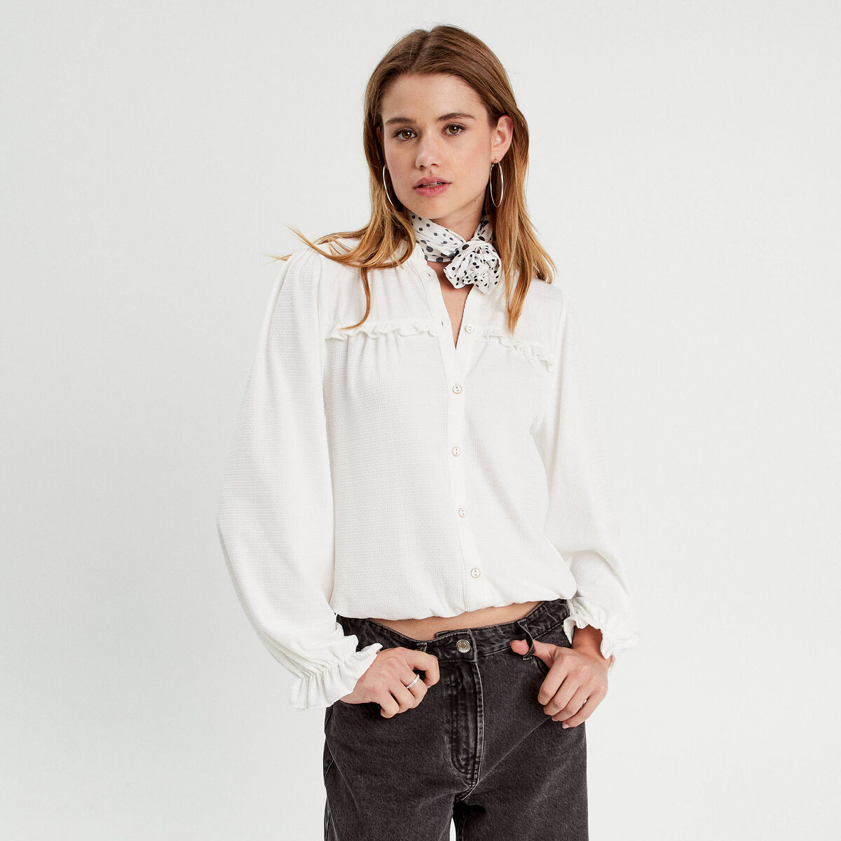 Blouse détails volants ecru femme