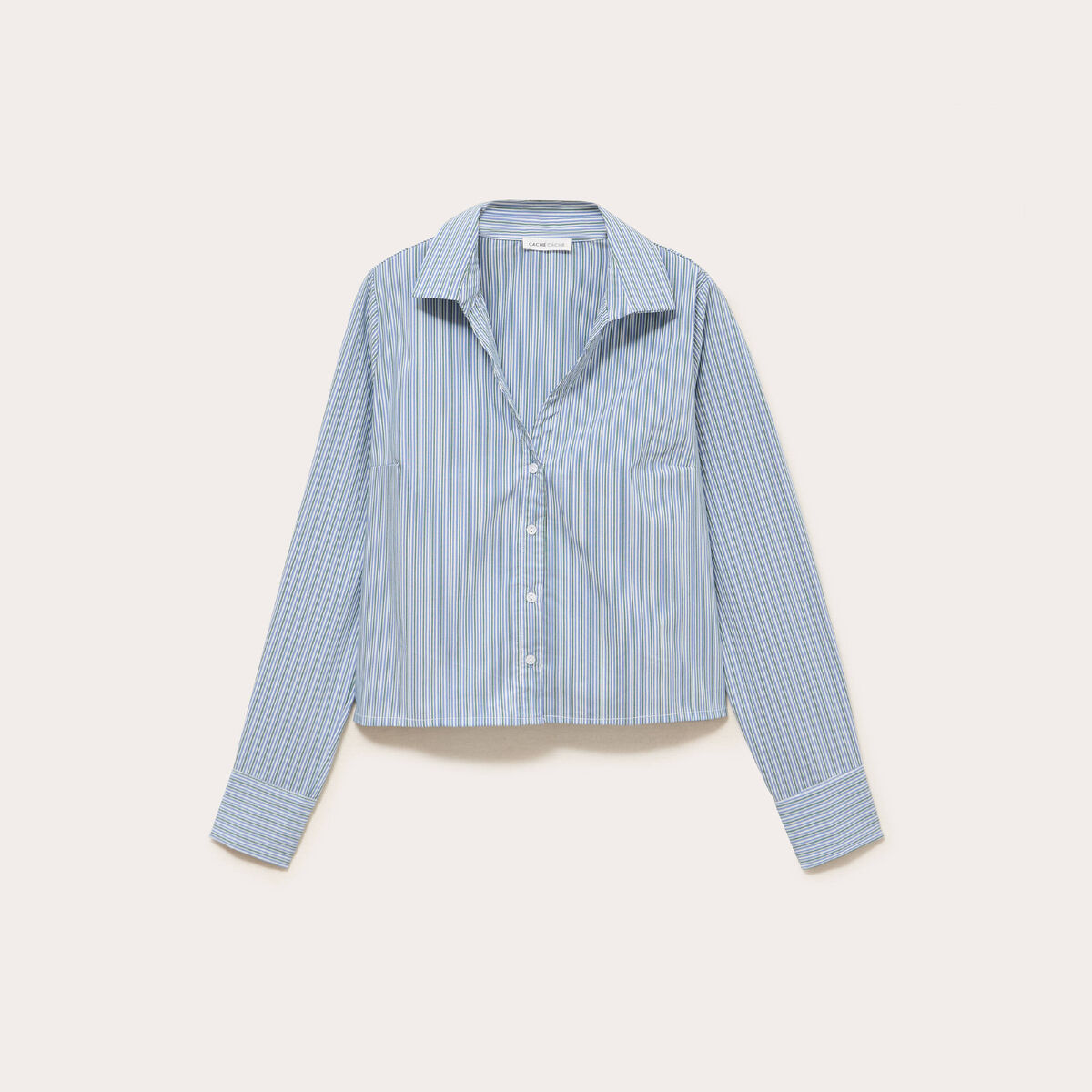 Blouse droite cropped manches longues ecru femme