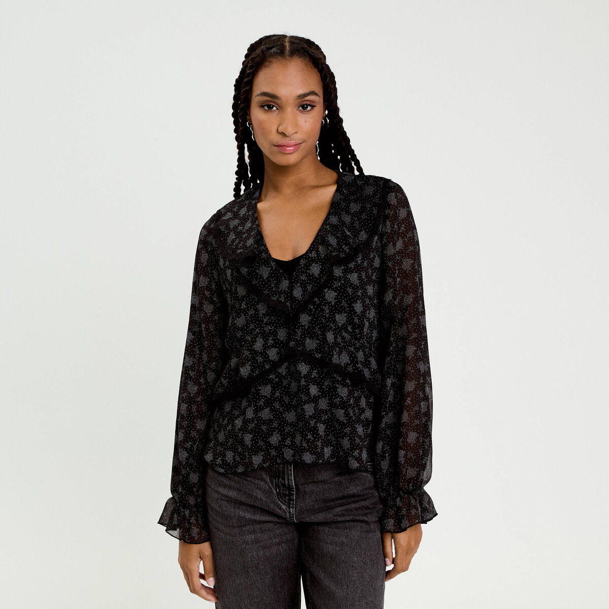 Blouse manches longues noir femme