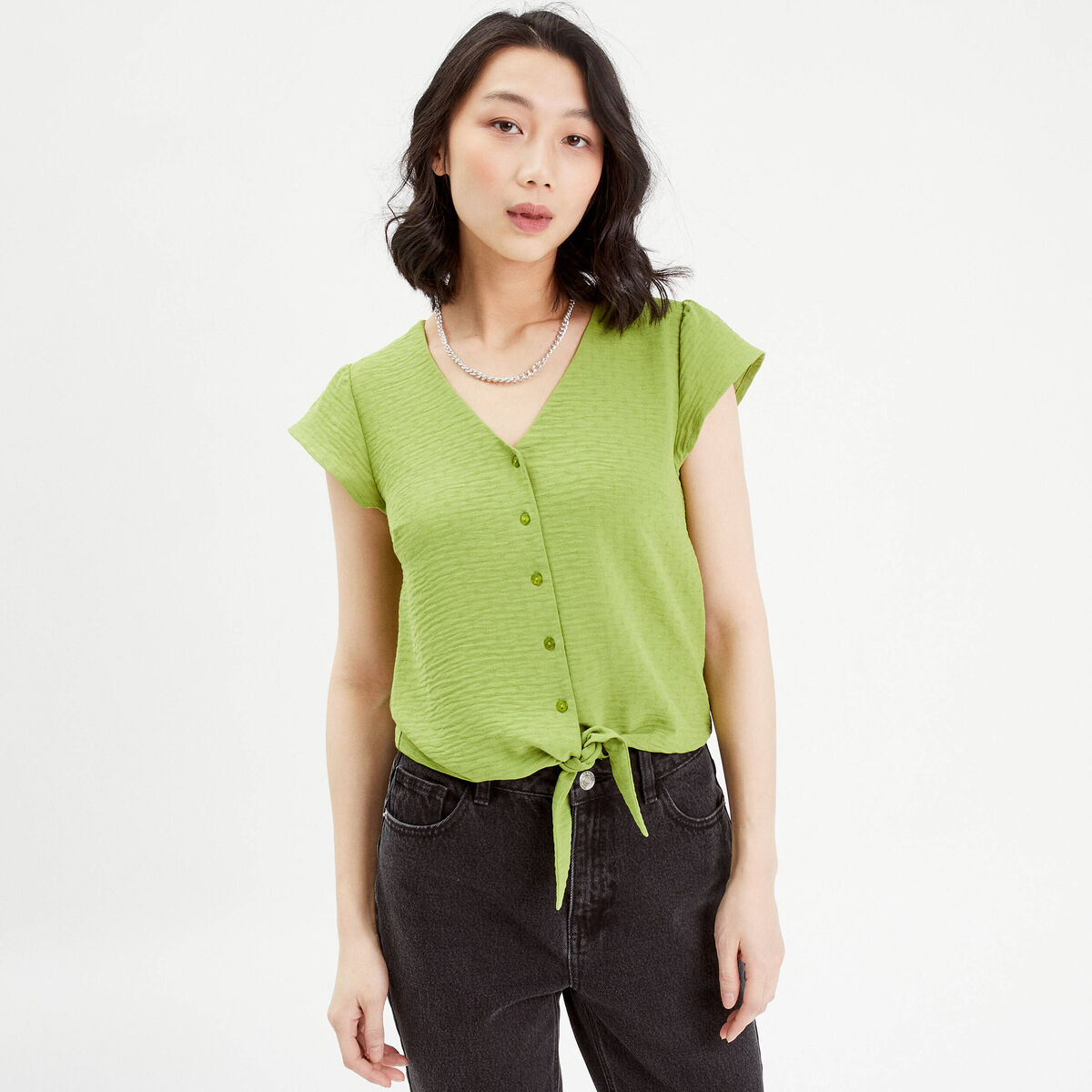 Blouse manches courtes vert anis femme