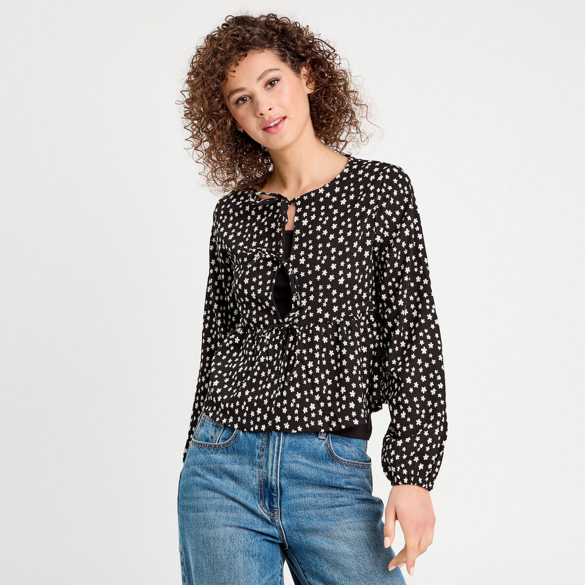 Blouse avec noeuds noir femme