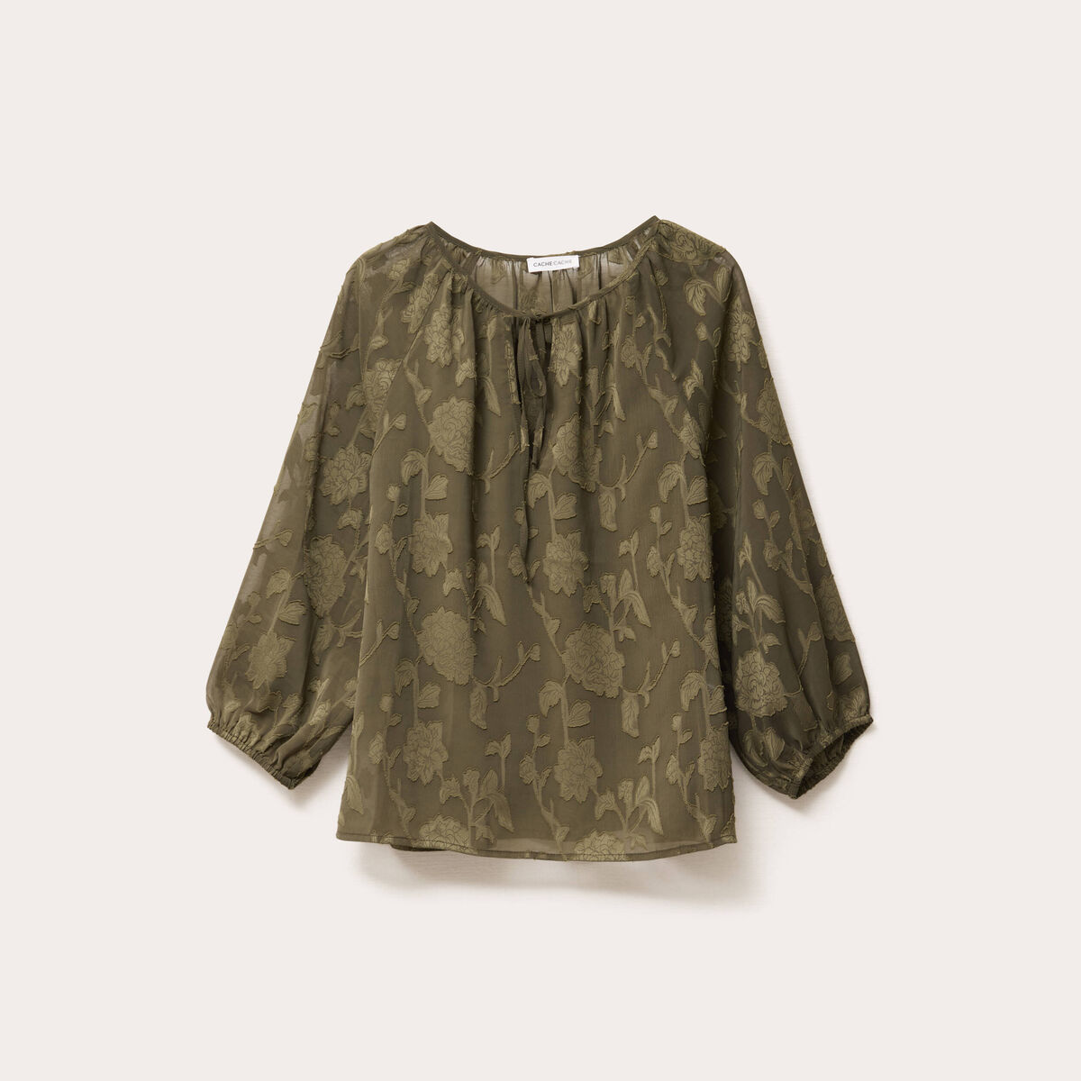Blouse manches 3/4 vert kaki femme