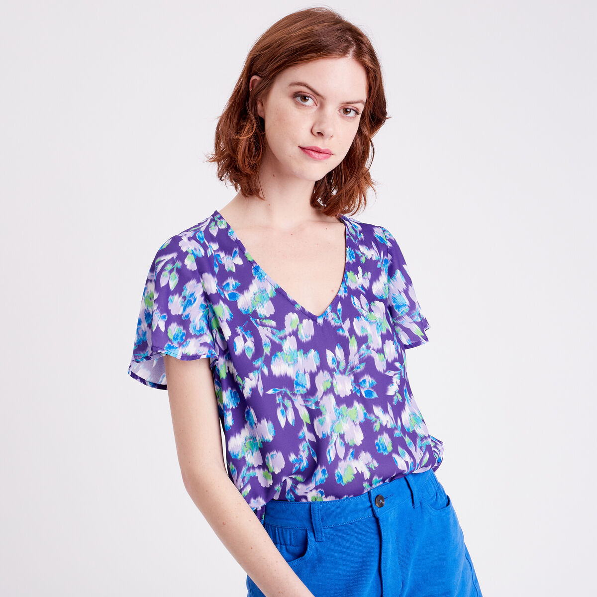 Blouse manches courtes imprimé violet femme