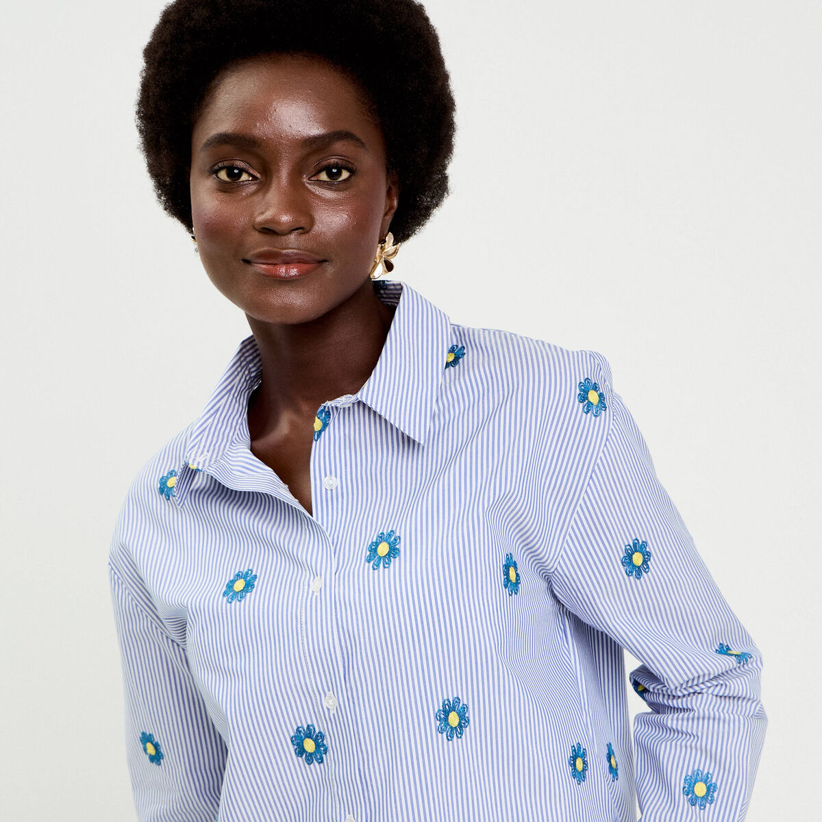 Chemise manches longues bleu ciel femme