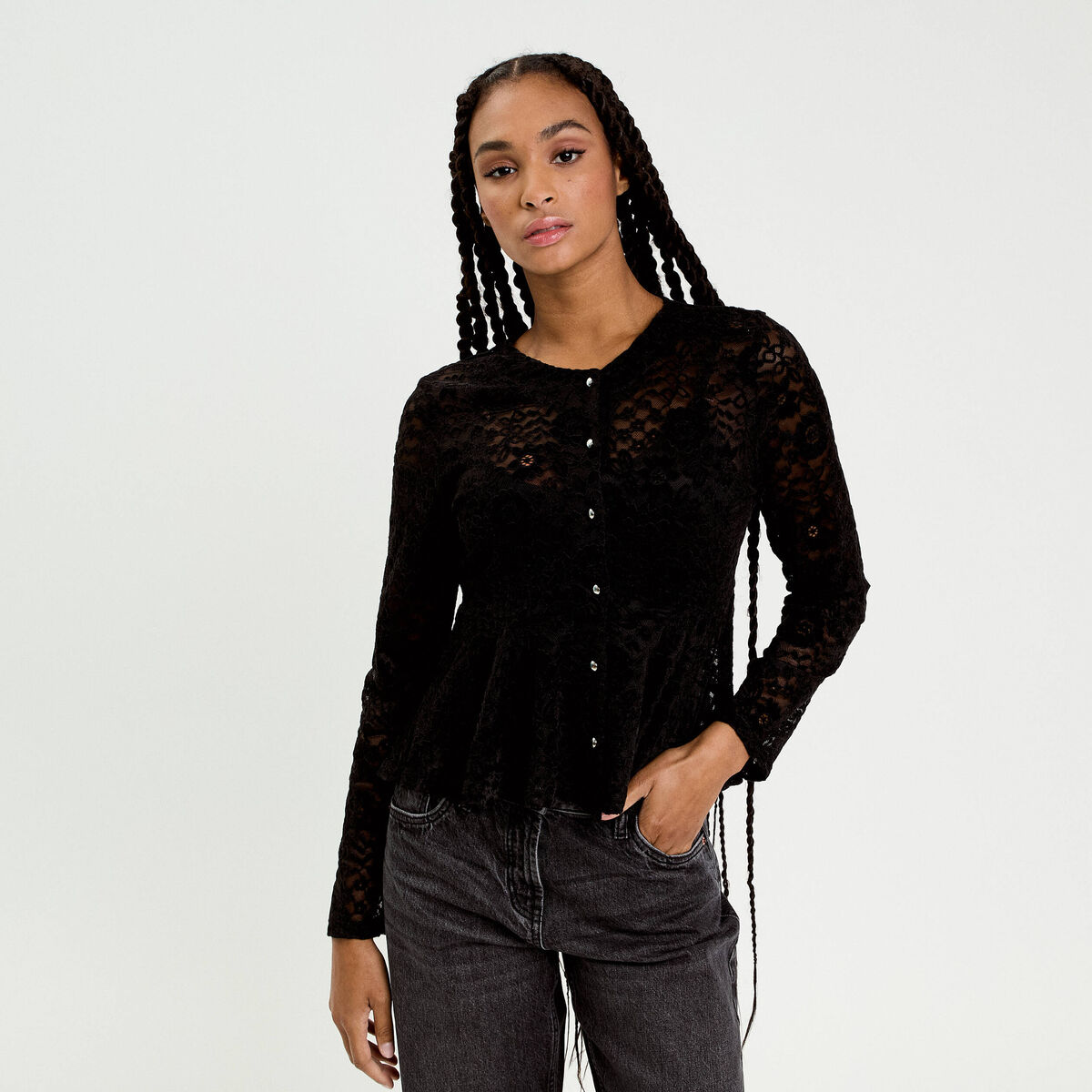 Blouse péplum dentelle noir femme
