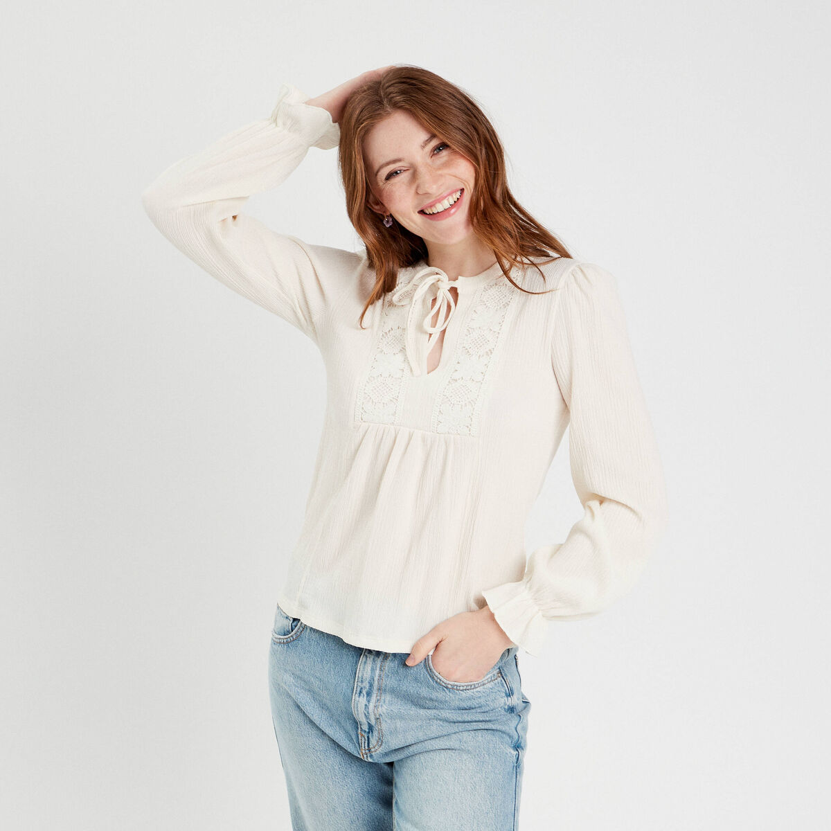 Blouse manches longues ecru femme