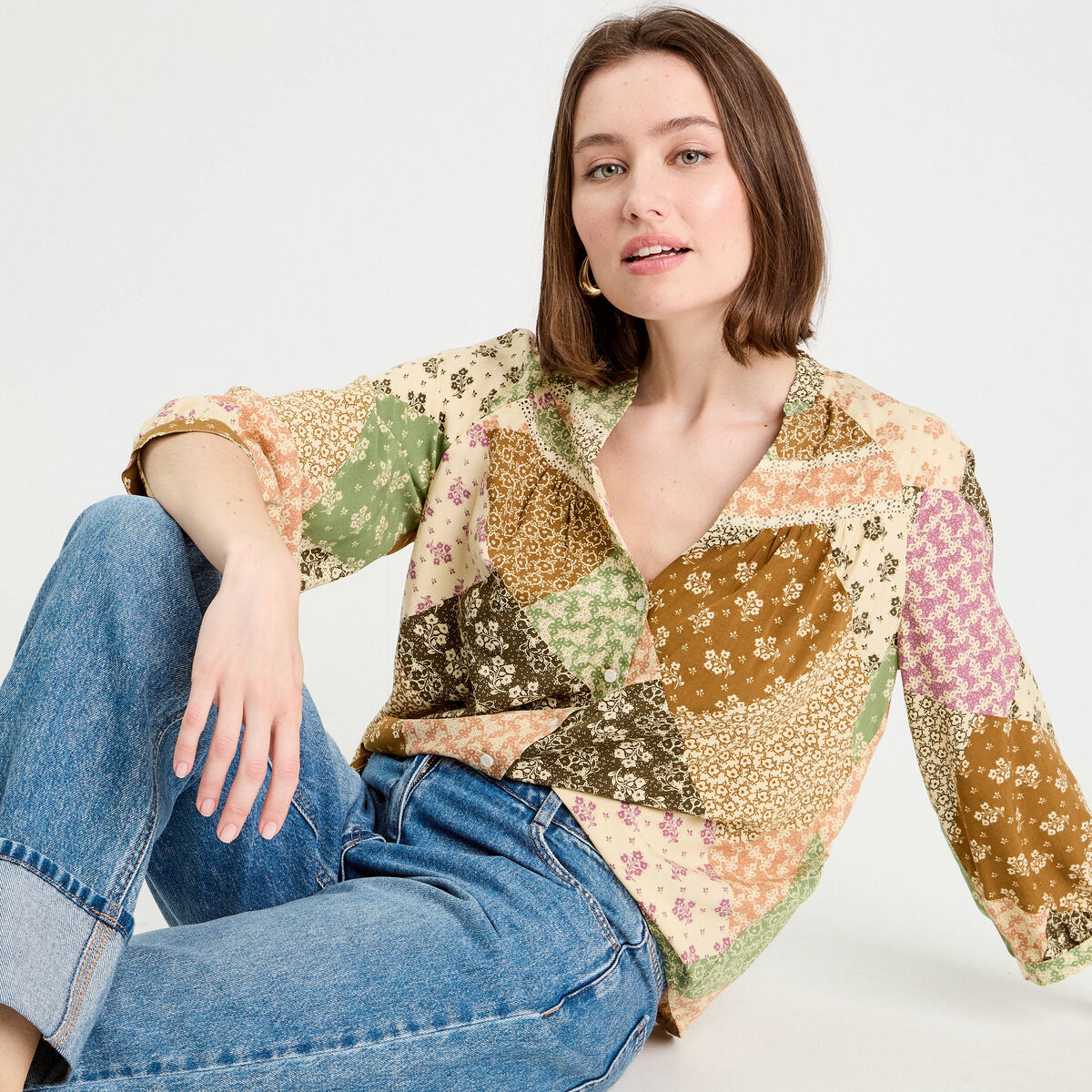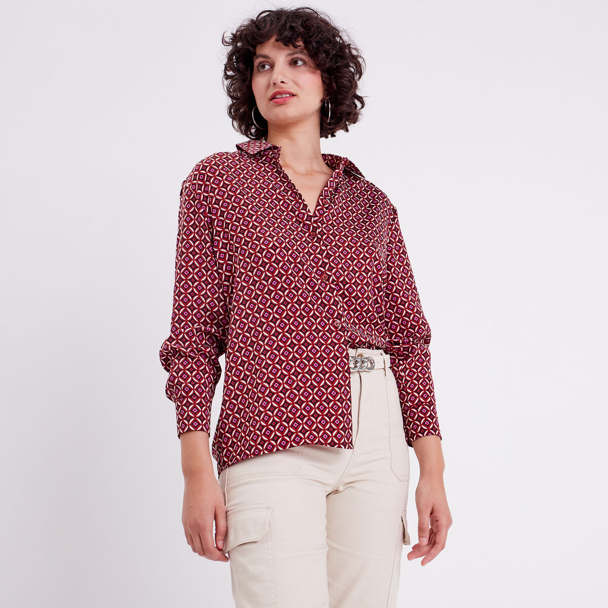 Chemise manches 3/4 beige femme