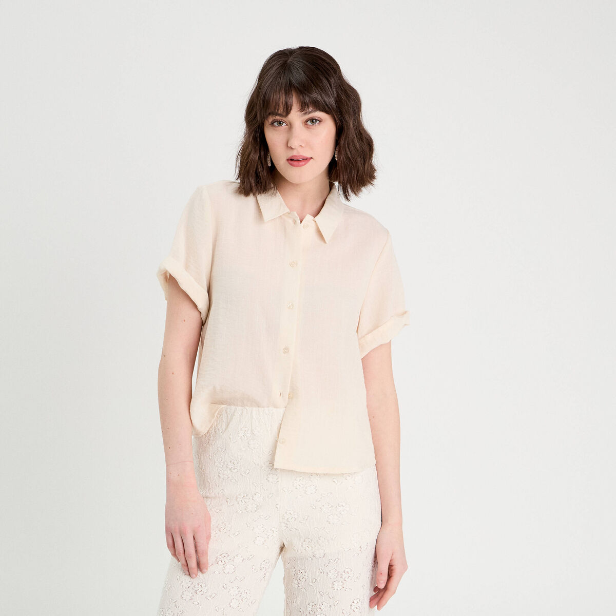Chemise manches courtes ecru femme