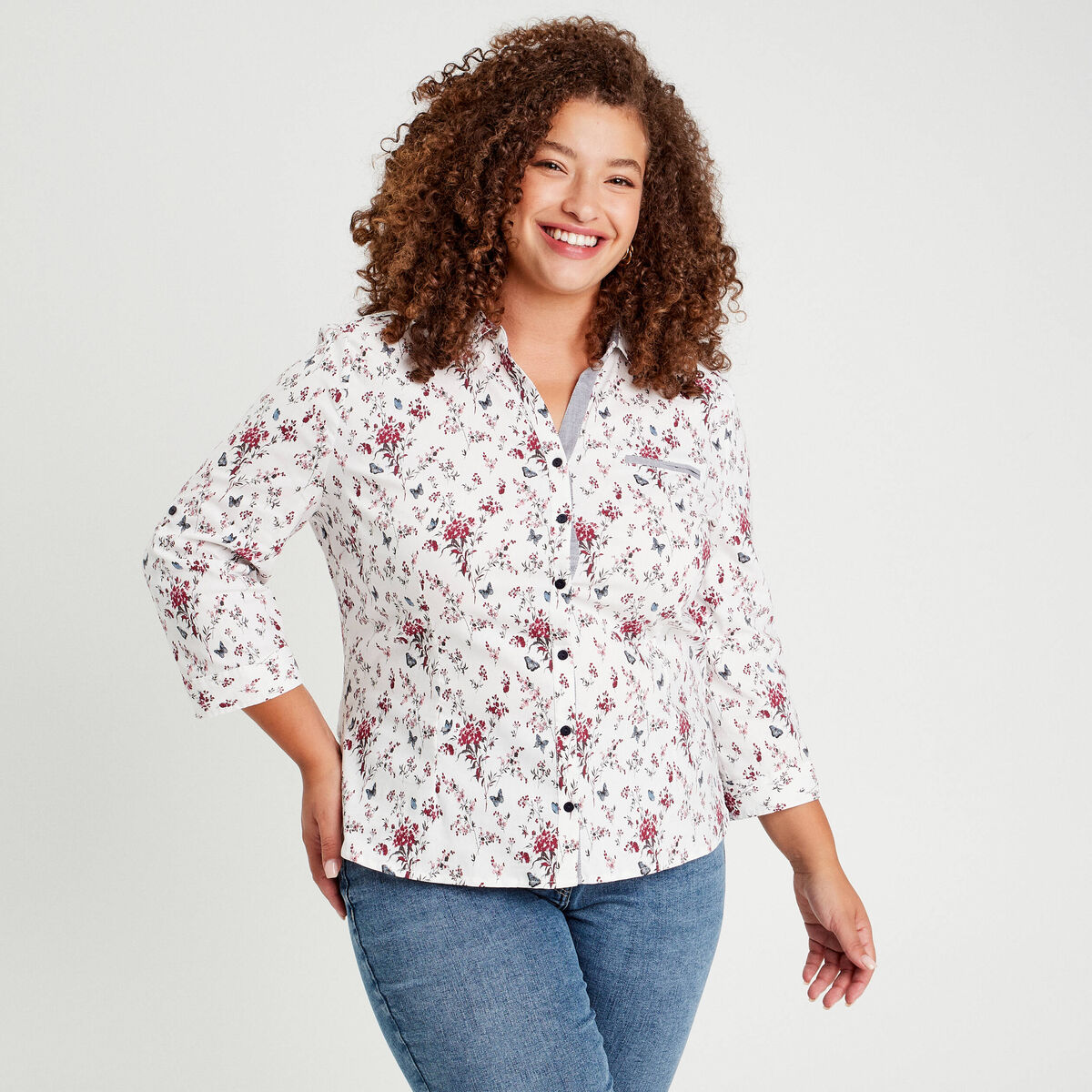 Chemise manches 3/4 blanc femme