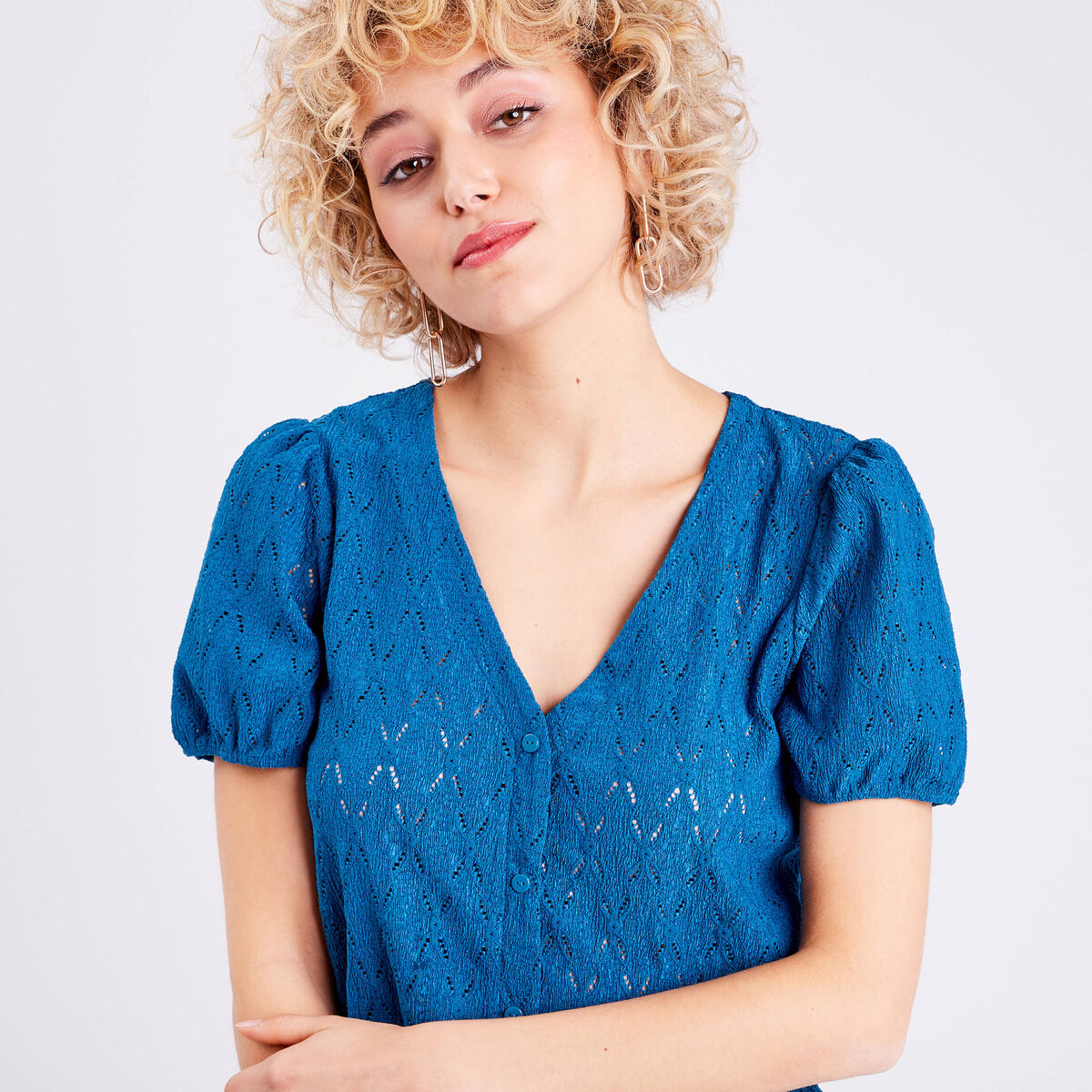 Blouse manches courtes bleu canard femme