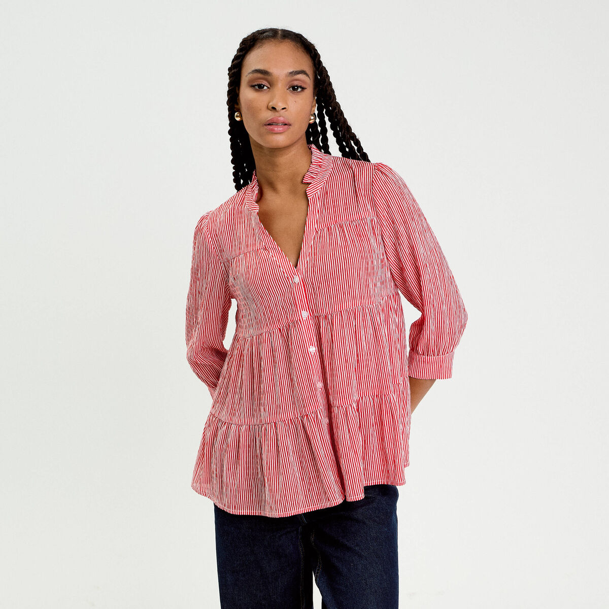 Blouse manches 3/4 rouge vif femme