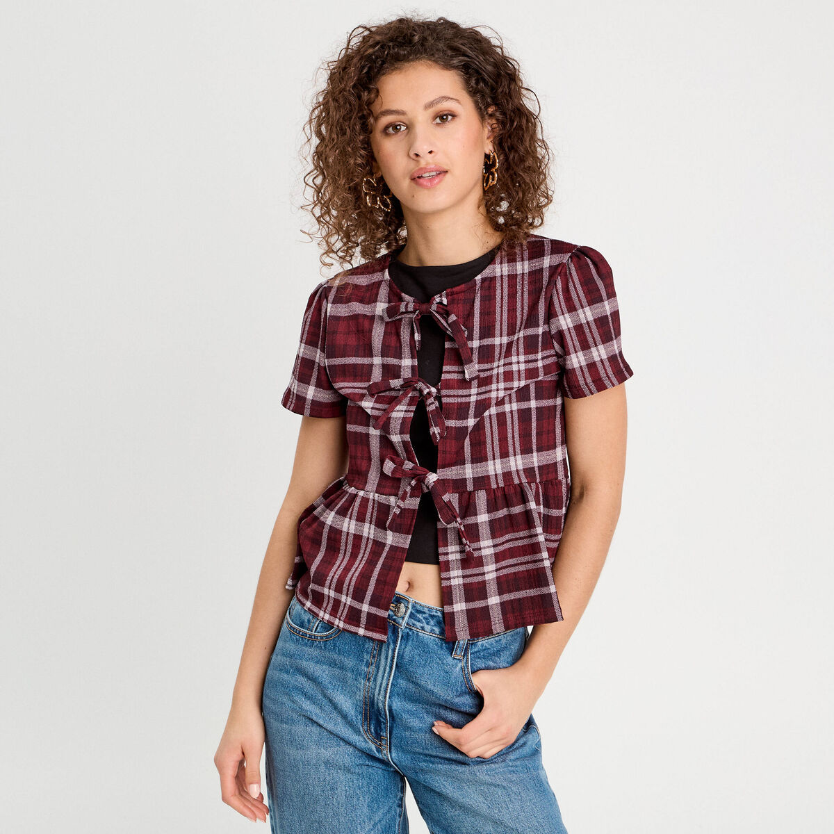 Blouse avec noeuds bordeaux femme