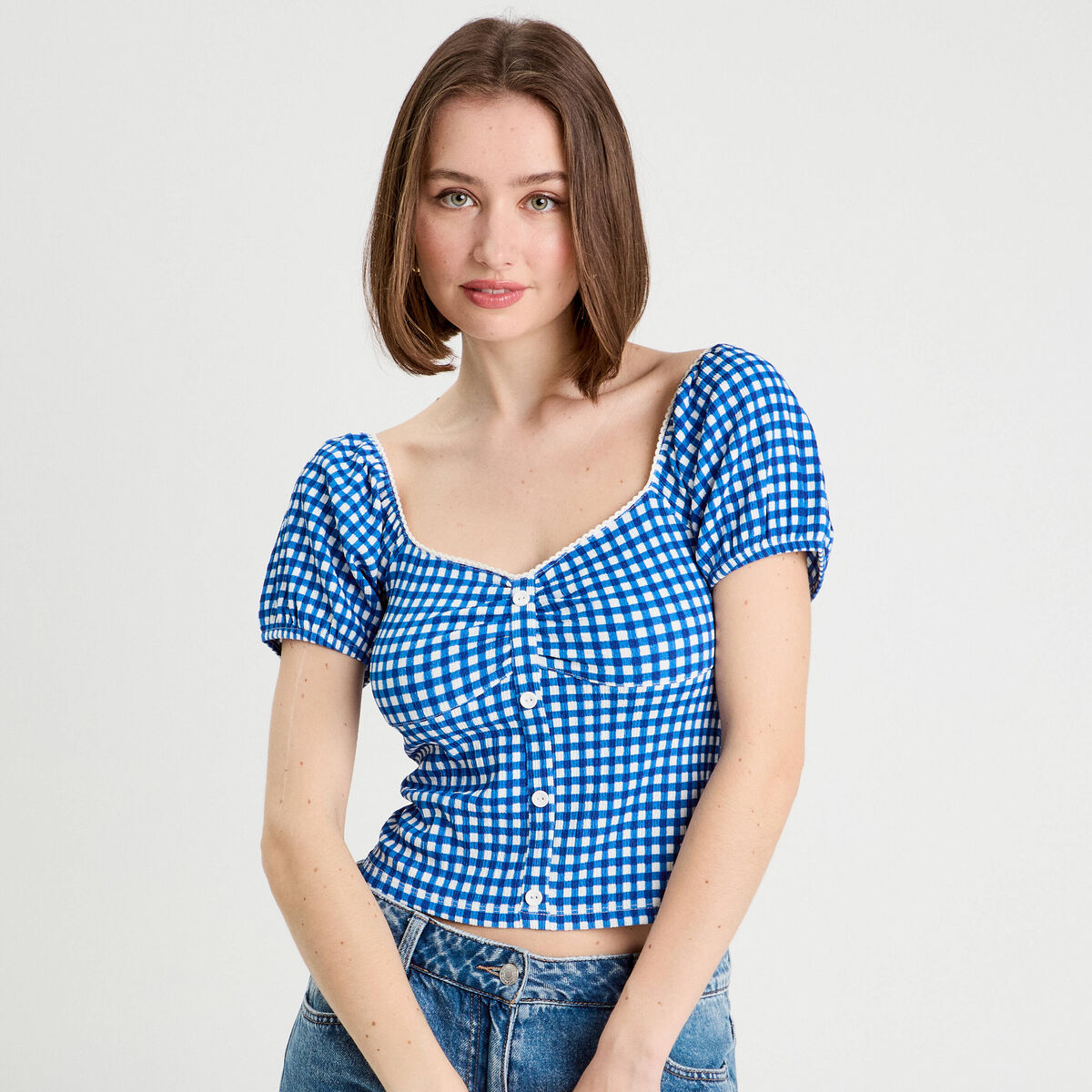 Blouse cropped bleu electrique femme