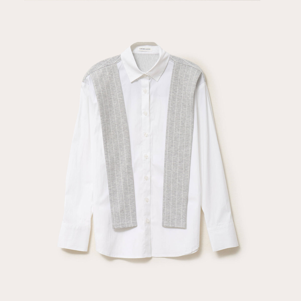 Pull effet 2-en-1 chemise gris clair femme