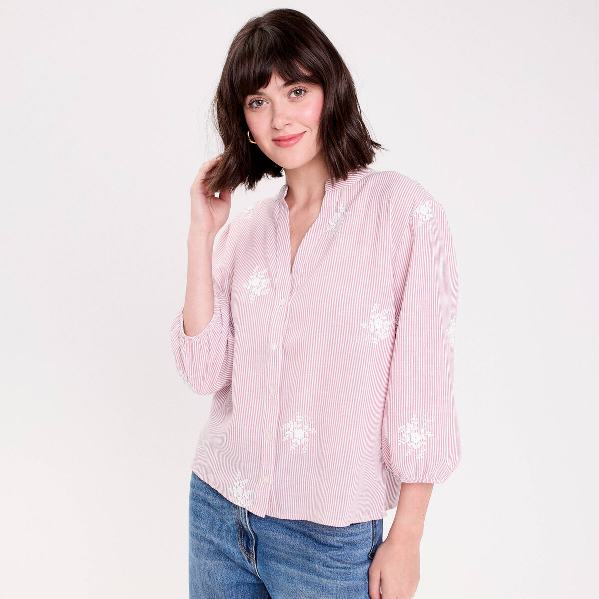 Chemise rayée broderies fantaisie vert clair femme