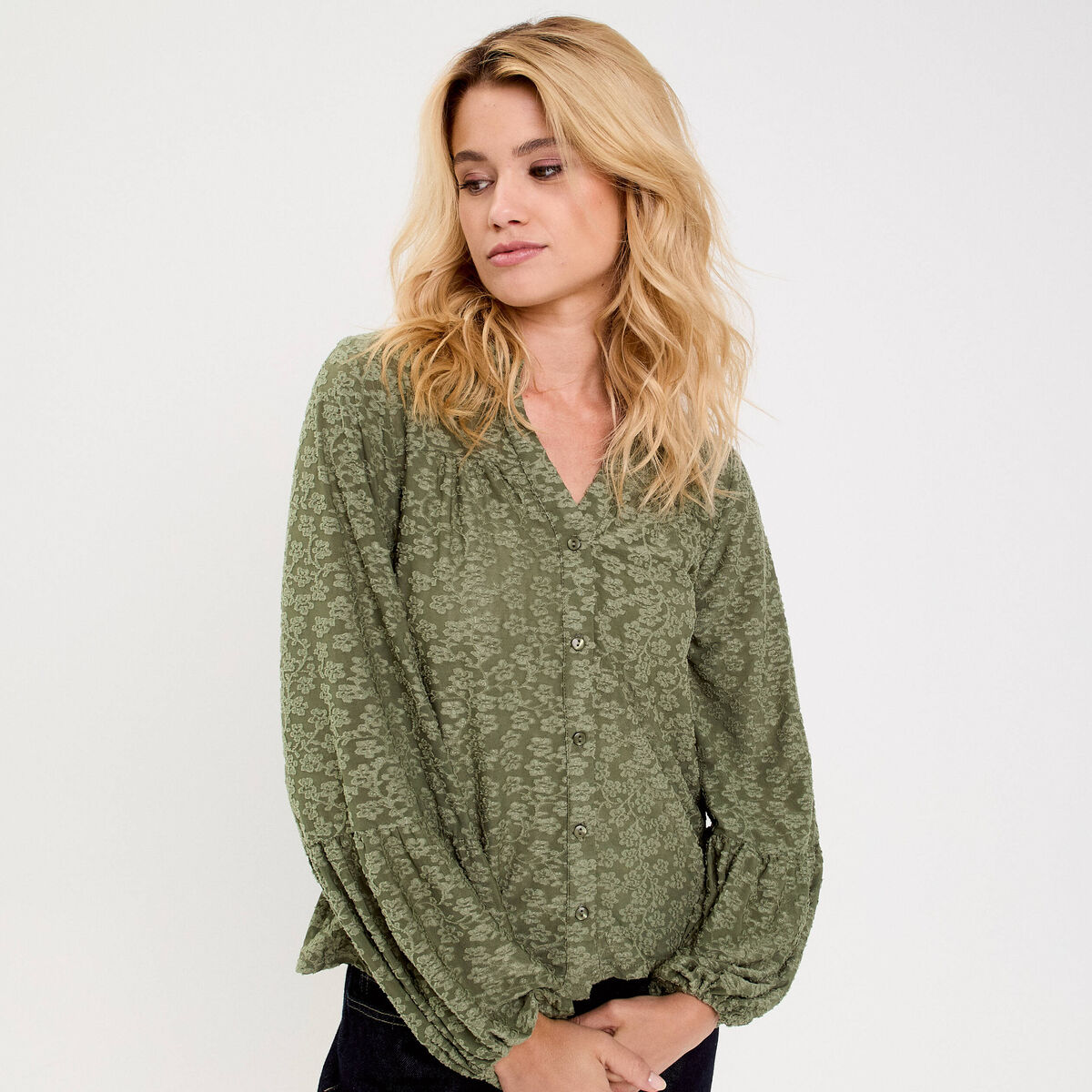 Blouse manches longues vert kaki femme