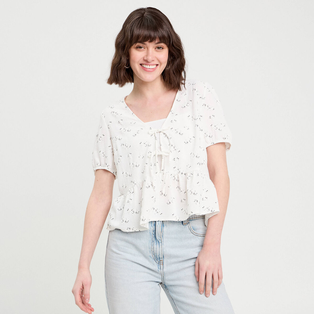 Blouse noeuds devant blanc femme