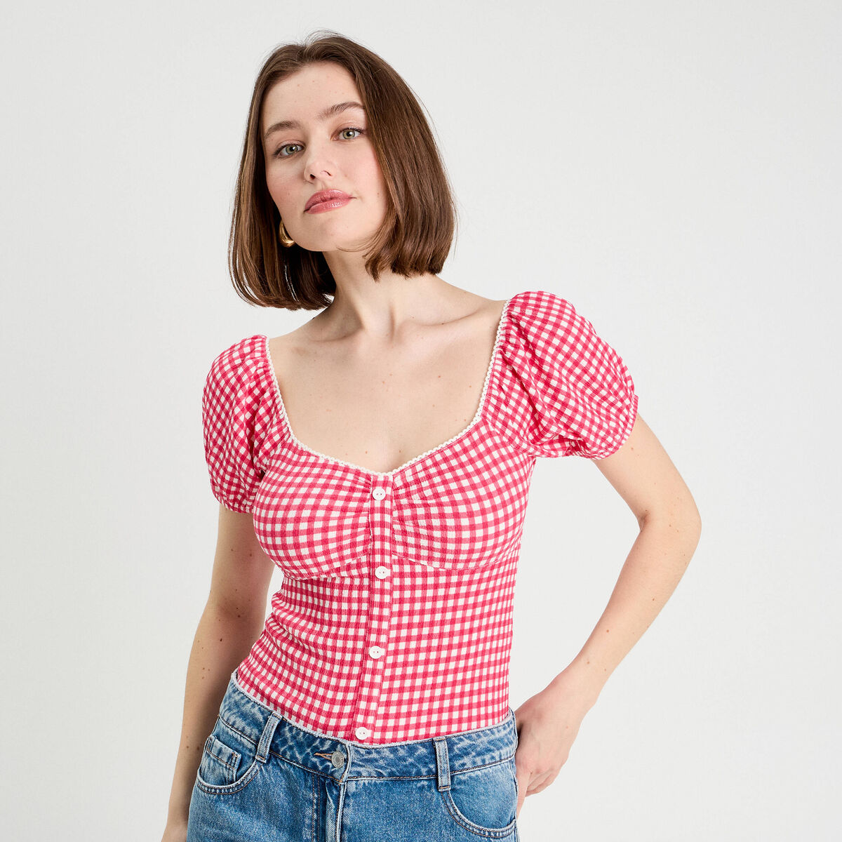 Blouse cropped rose framboise femme