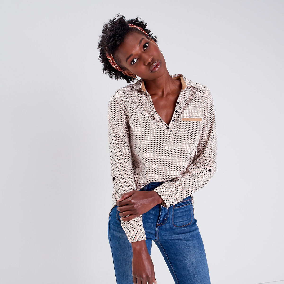 Blouse manches longues camel femme