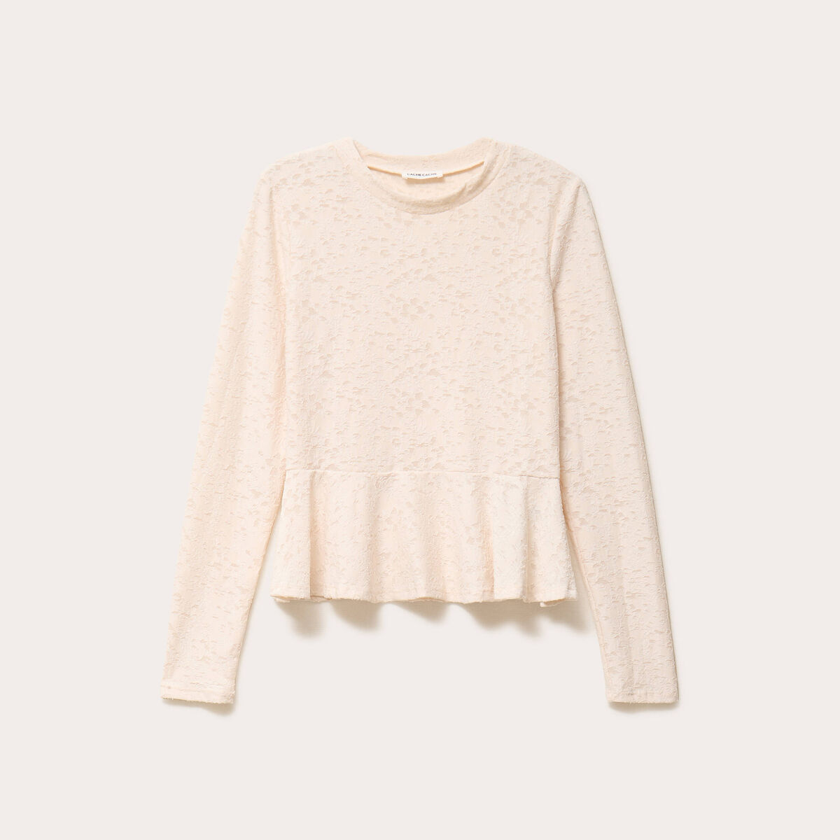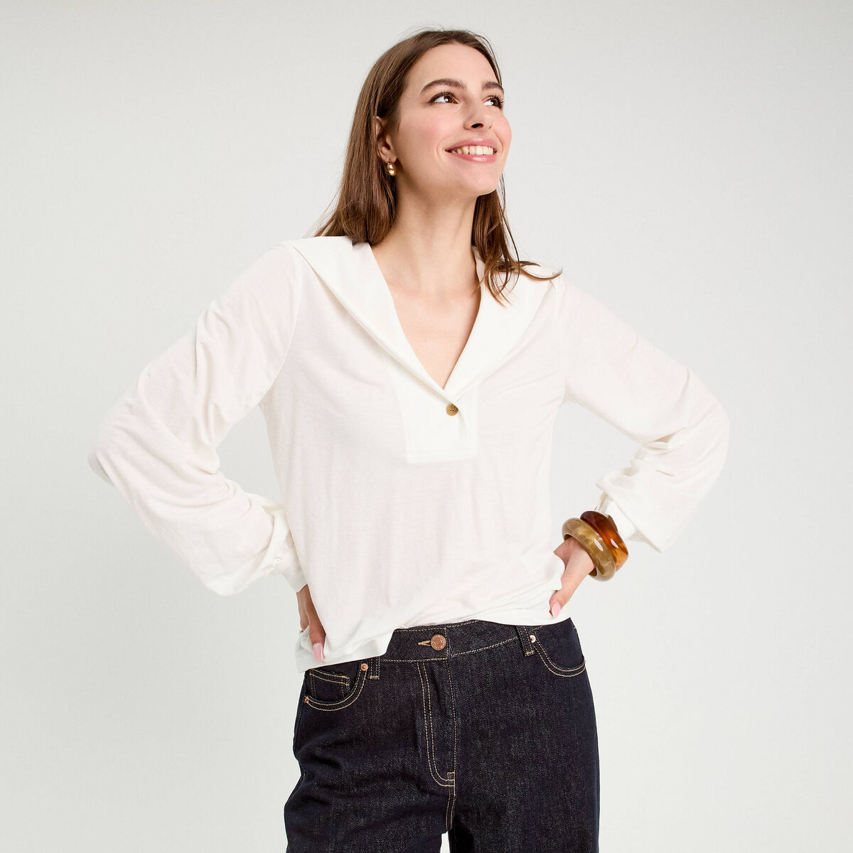 Blouse ajustée col rond manches longues ecru femme